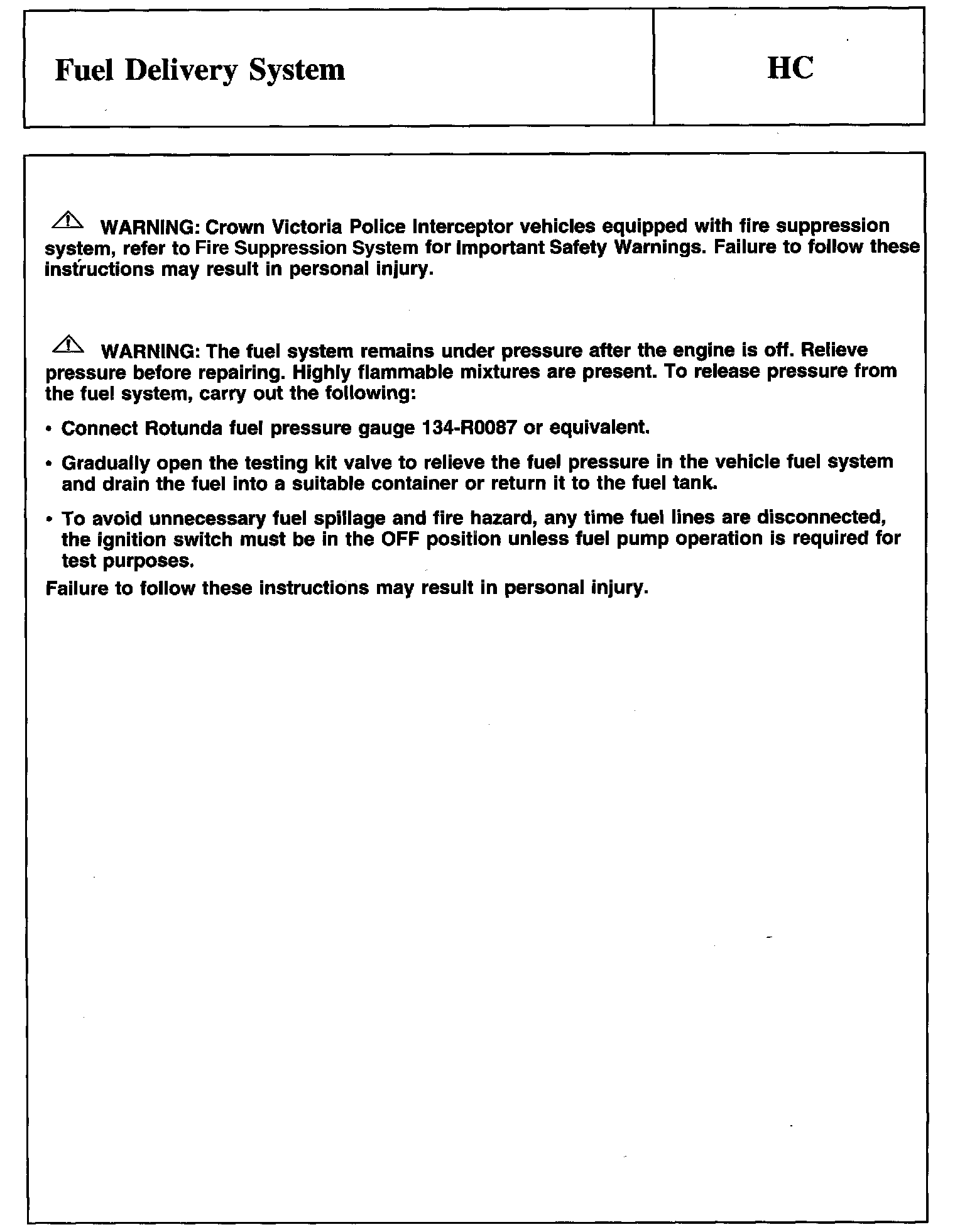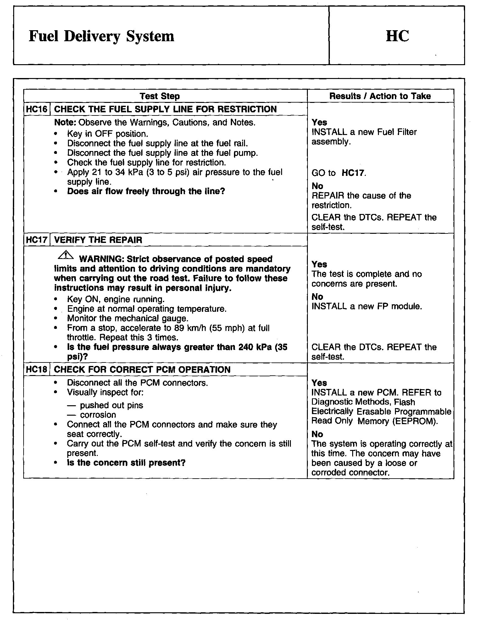 PINPOINT TEST HC: FUEL DELIVERY SYSTEMWarnings:
