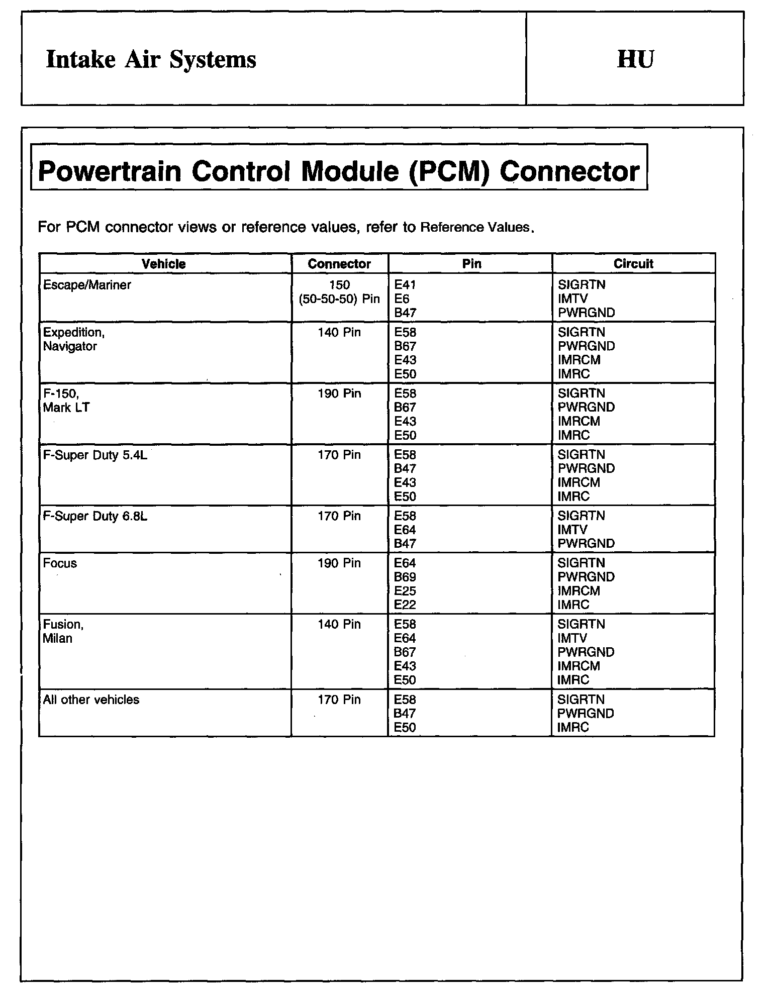 Home >> Ford >> 2008 >> Edge AWD V6-3.5L >> Repair and Diagnosis >> Powertrain Management >> Computers and Control Systems >> Testing and Inspection >> Pinpoint Tests >> Tests HU: Intake Air System