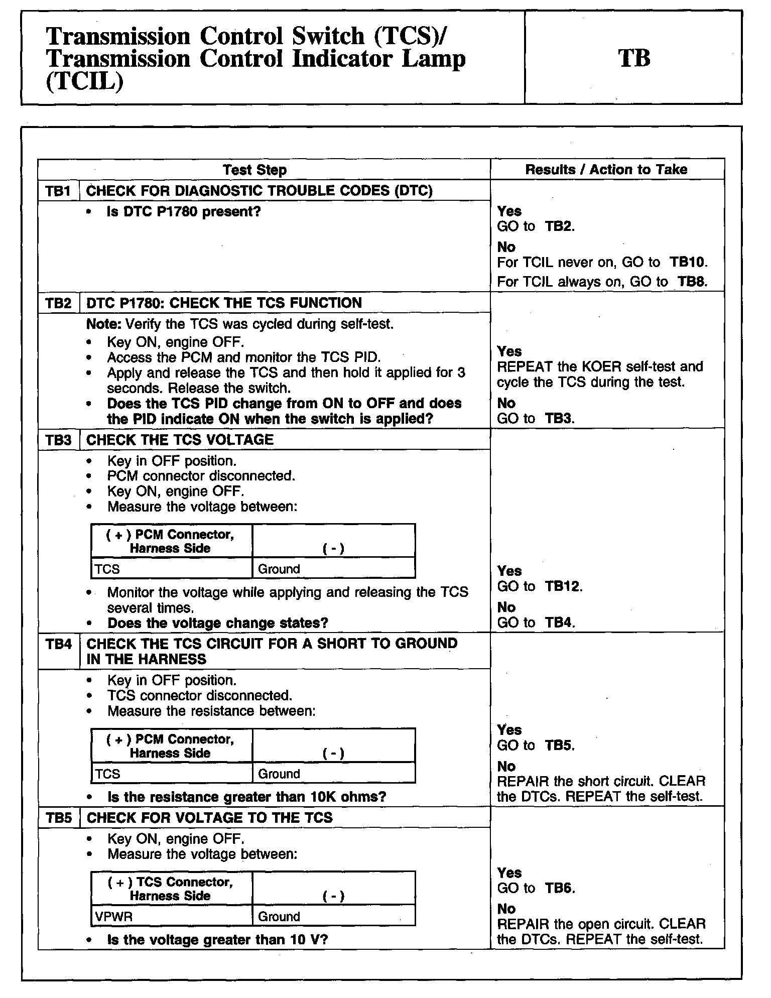 Tests TB: Transmission Control Switch (TCS)/Transmission Control Indicator Lamp (TCIL)