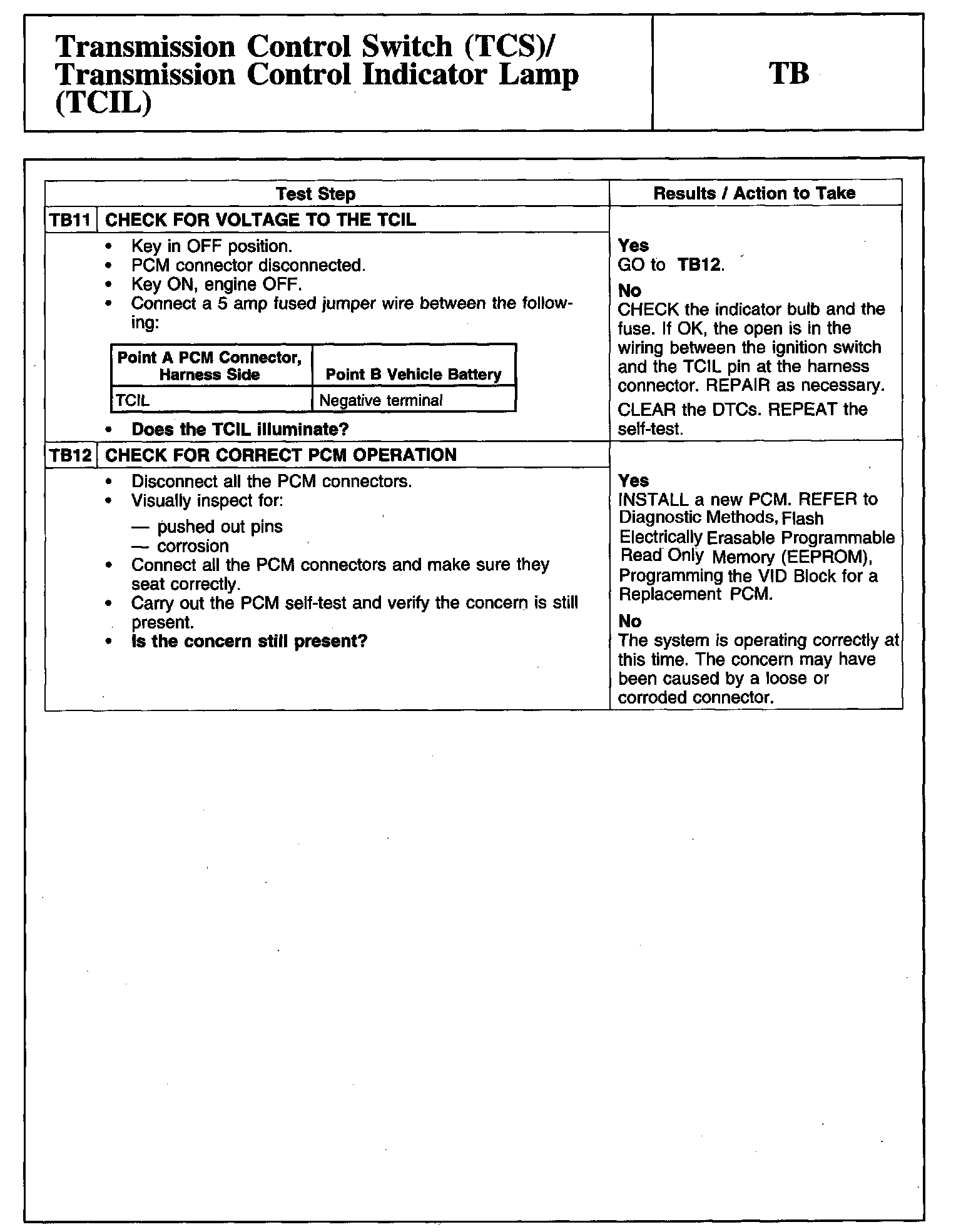 PINPOINT TEST TB: TRANSMISSION CONTROL SWITCH (TCS)/TRANSMISSION CONTROL INDICATOR LAMP (TCIL)