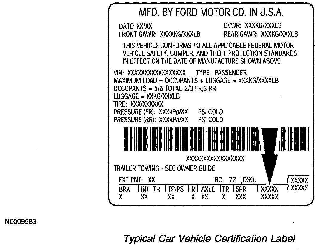 Typical Car Vehicle Certification Label: