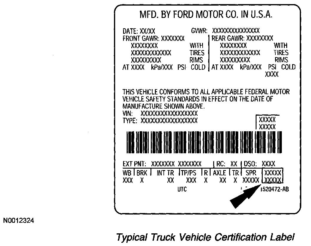 Typical Truck Vehicle Certification Label: