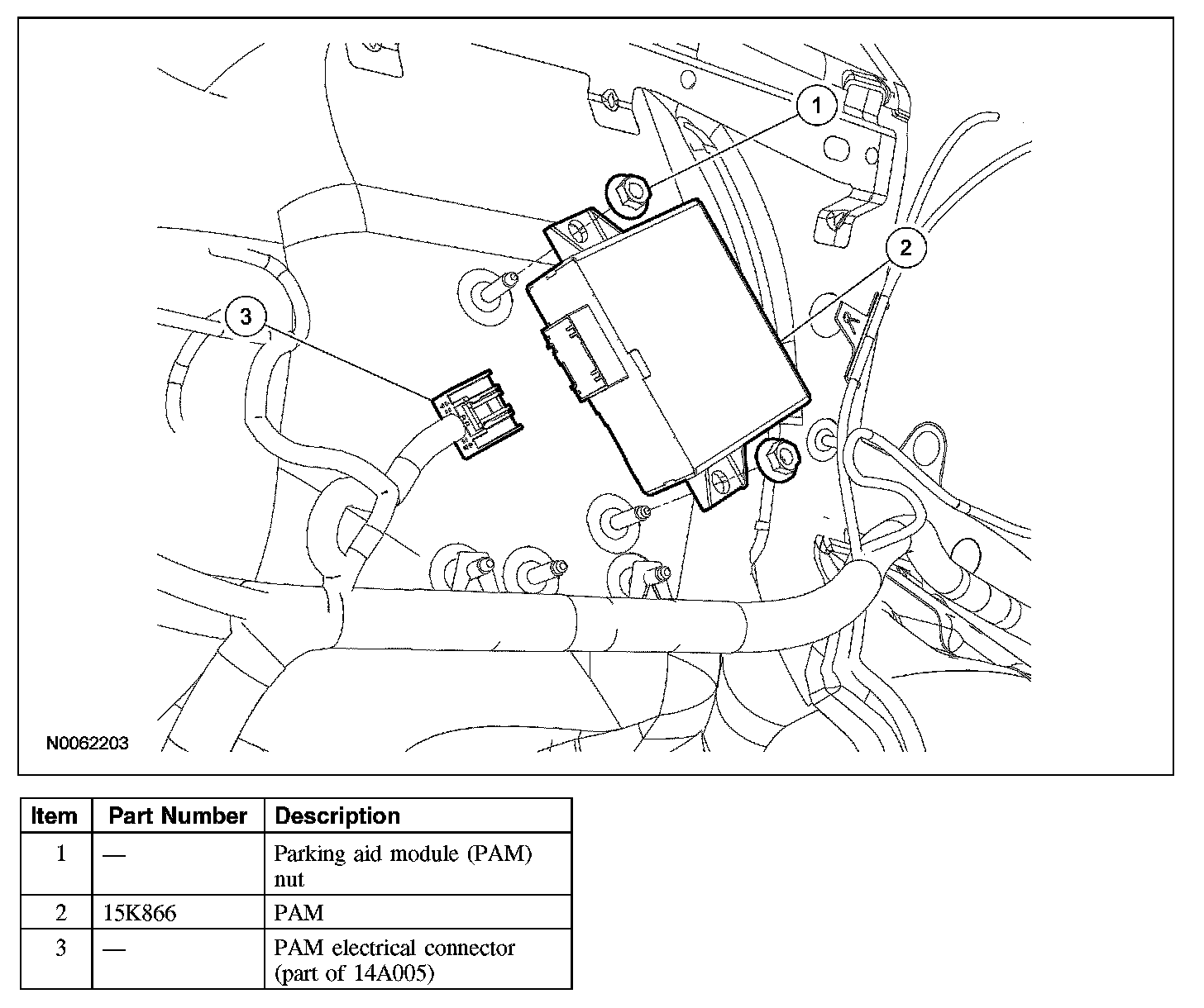 2. Remove the 2 nuts and the parking aid module (PAM).