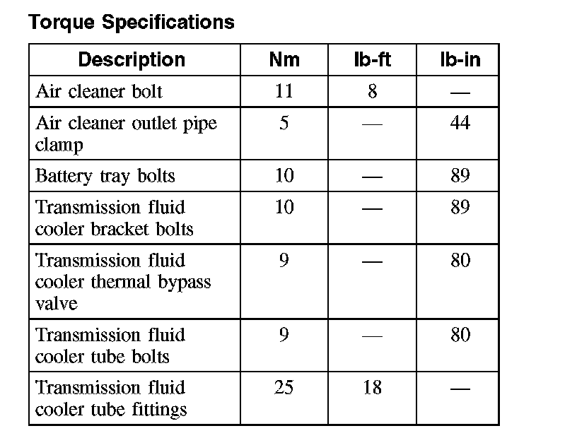 Torque Specifications: