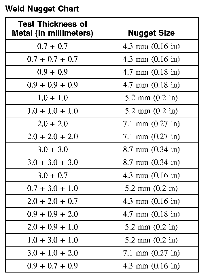 Weld Nugget Chart: