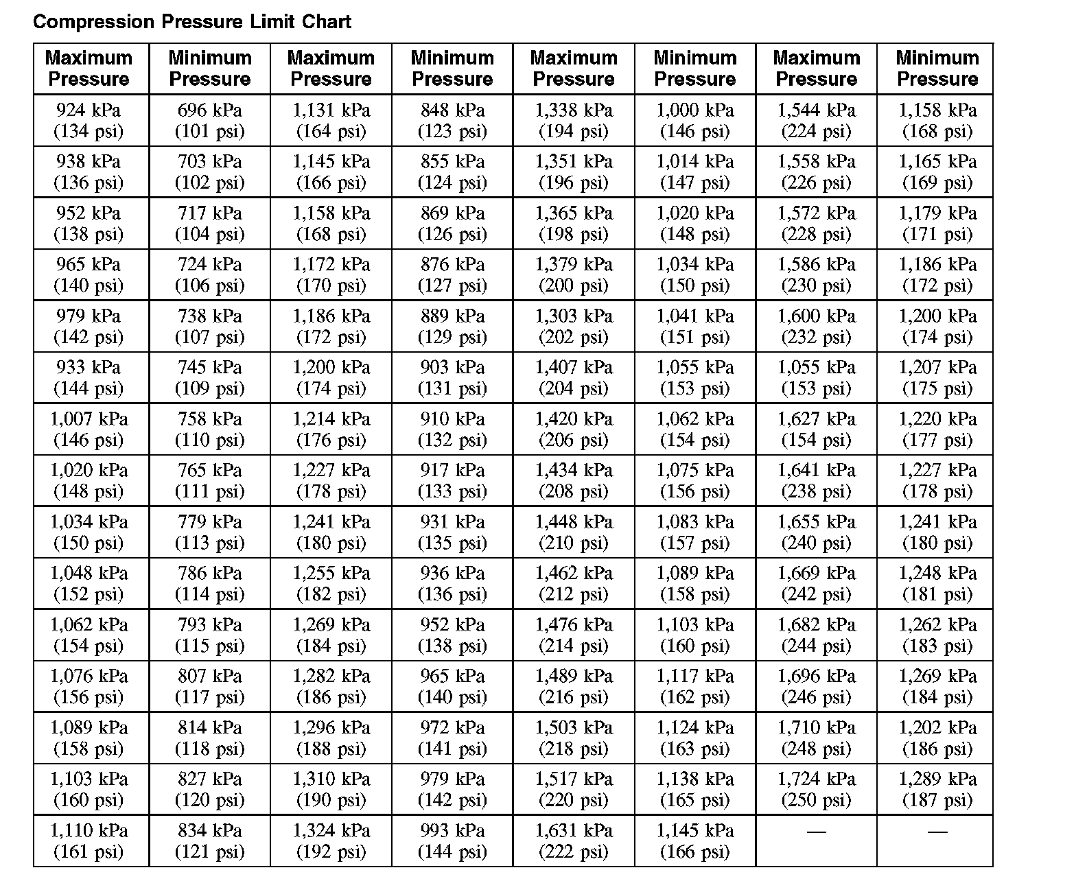 AllData Editors Note - Ford does not provide a cranking pressure specification, only an acceptable range.Compression Test - Test Results