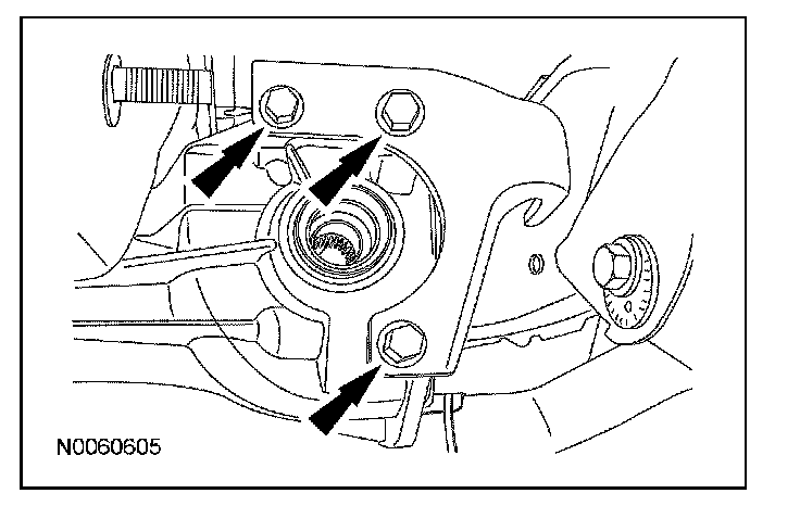 10. Remove the 3 LH side insulator or bracket-to-rear axle differential bolts.