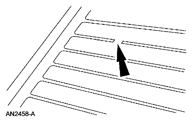 NOTE: The grid line material is not embedded into the glass but is baked to the glass surface and consequently can be scraped off. An undamaged grid line will have small ridges that project above the surface of the glass and can easily be felt when running a fingernail across them. Grid lines that have been "razor bladed" will feel smooth when a fingernail is dragged across the affected area. Inoperative lines may appear to the eye to be undamaged due to residue remaining on the glass and will require diagnosis with a voltmeter or 12V test lamp.