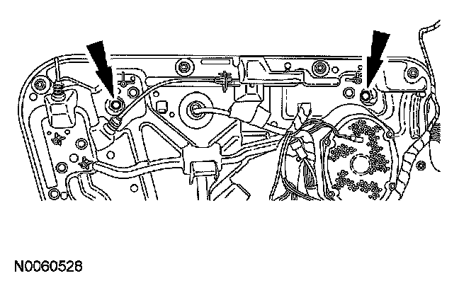 4. Lower the window until the glass clamp bolts can be accessed through the 2 access holes.
