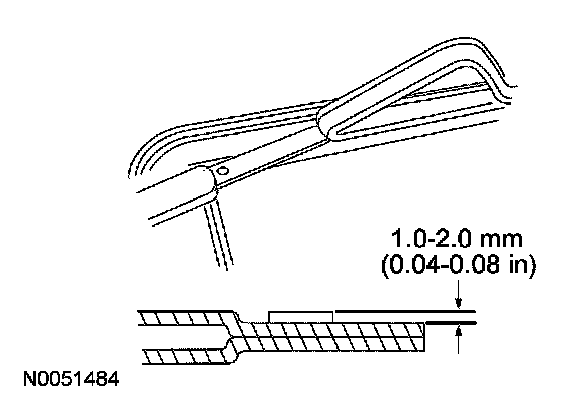 Using an appropriate tool, trim the urethane adhesive leaving a 1 mm (0.03 in) to 2 mm (0.07 in) base of original equipment urethane on the pinch weld.