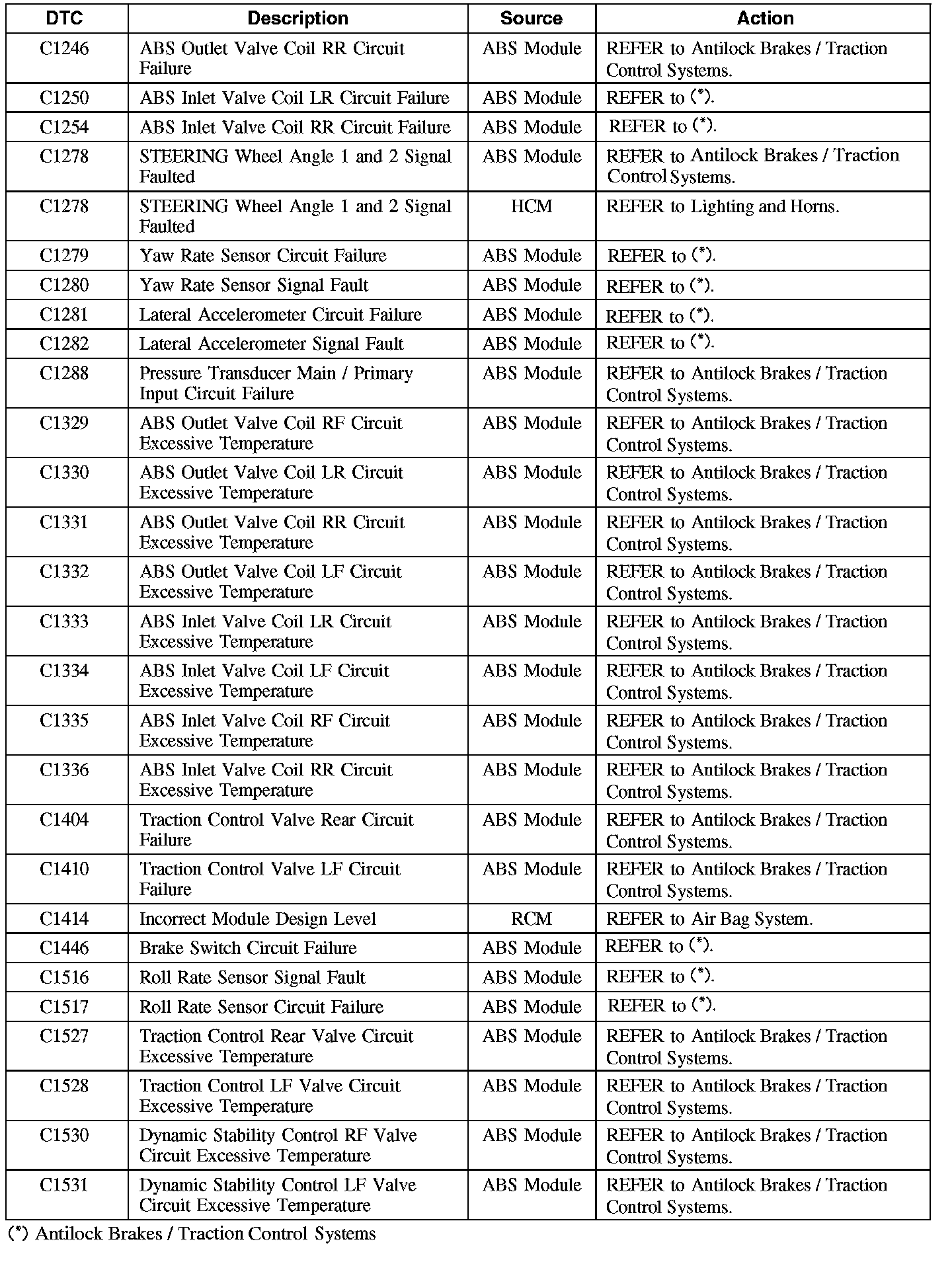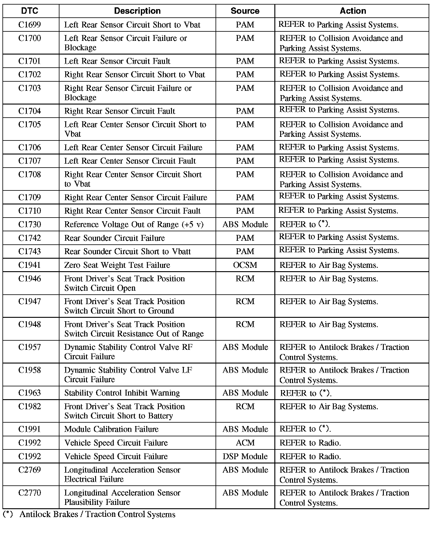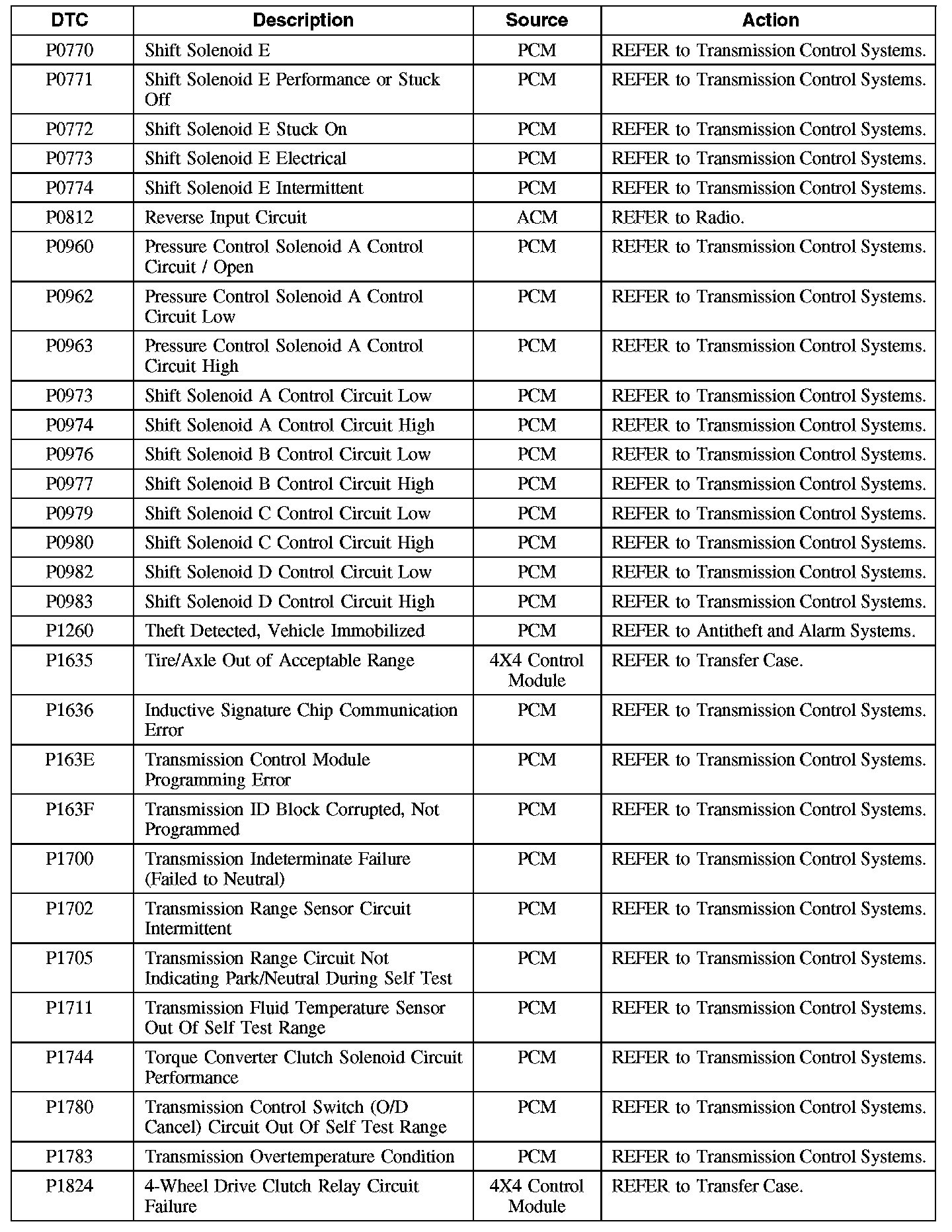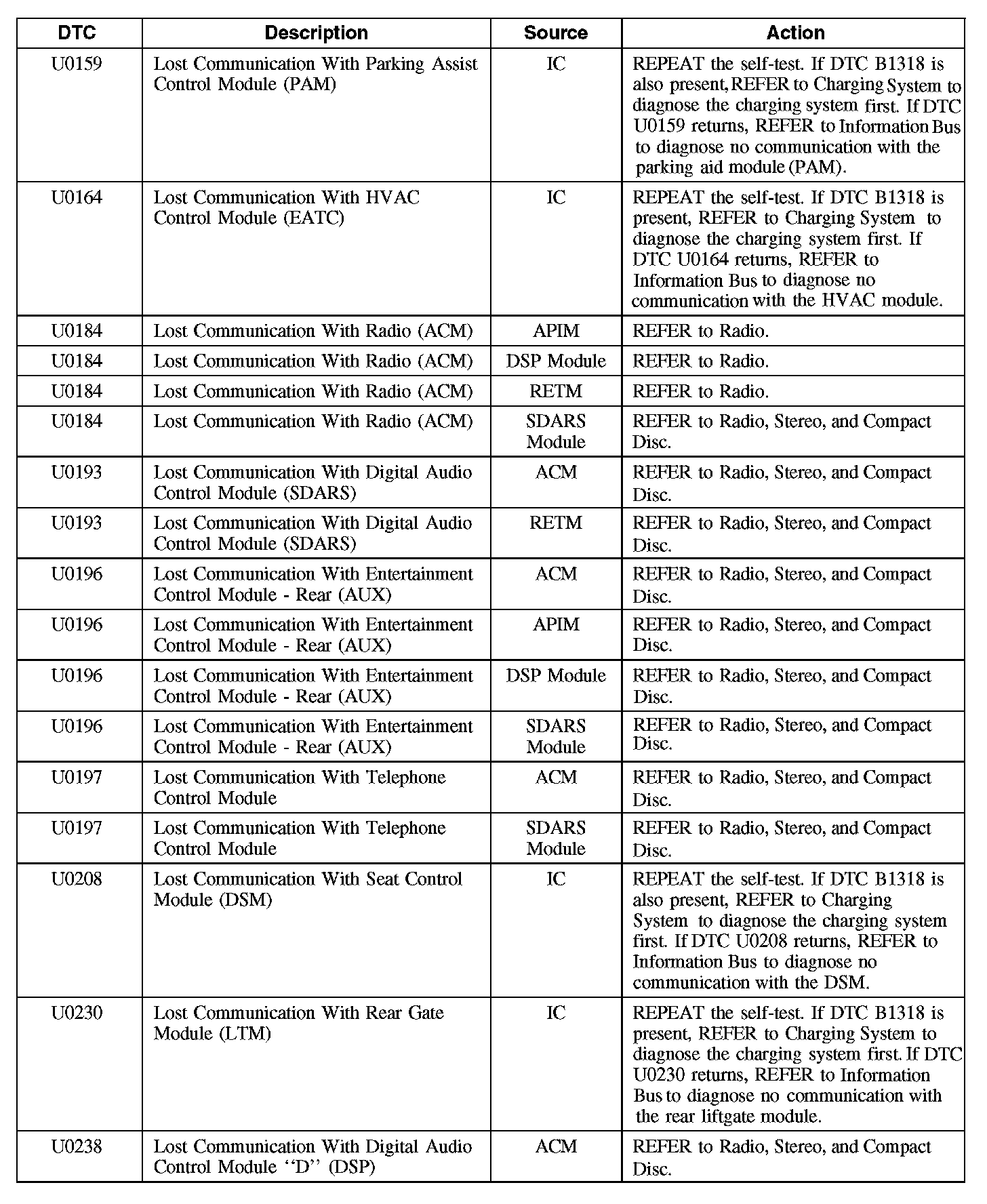 Diagnostic Trouble Code (DTC) Chart