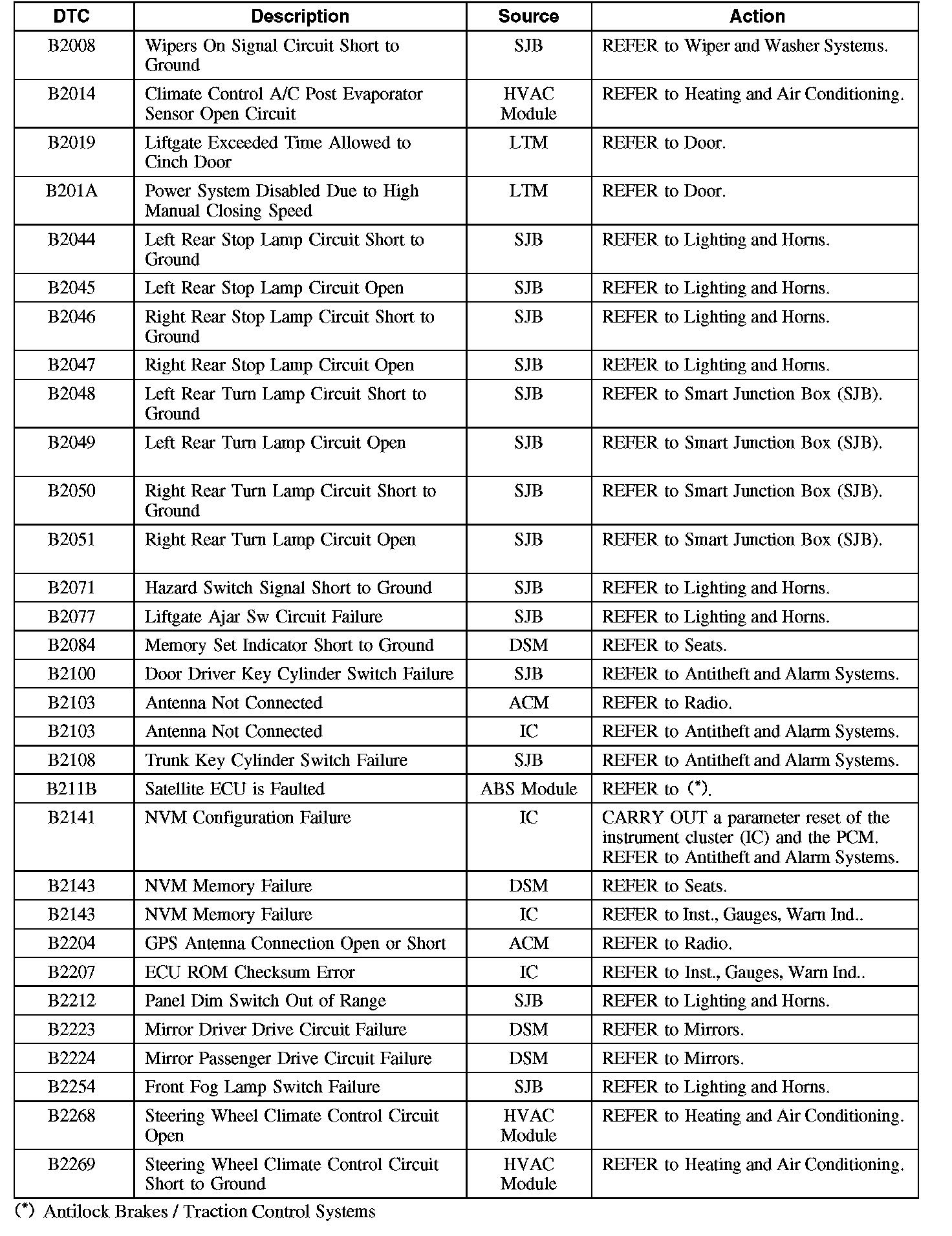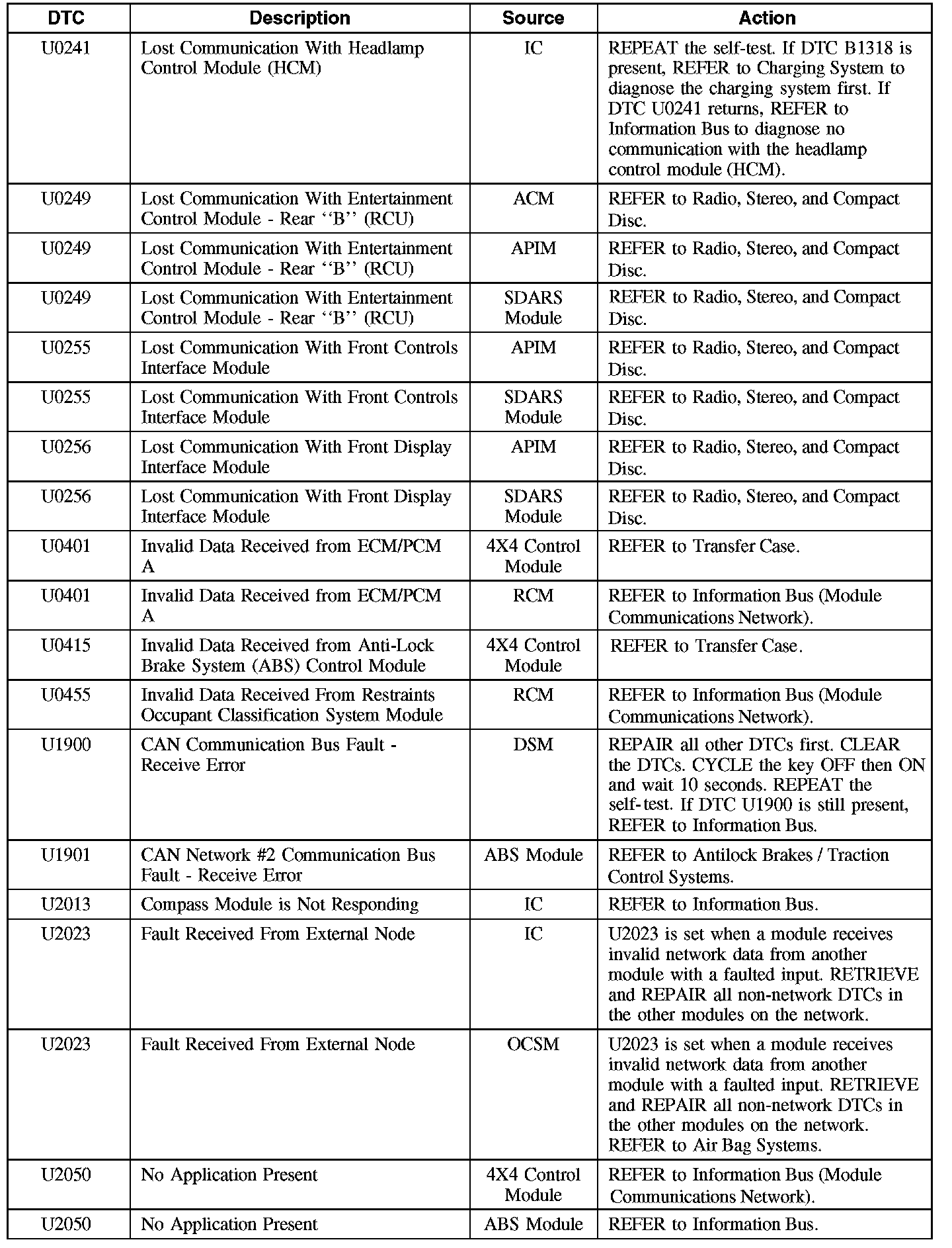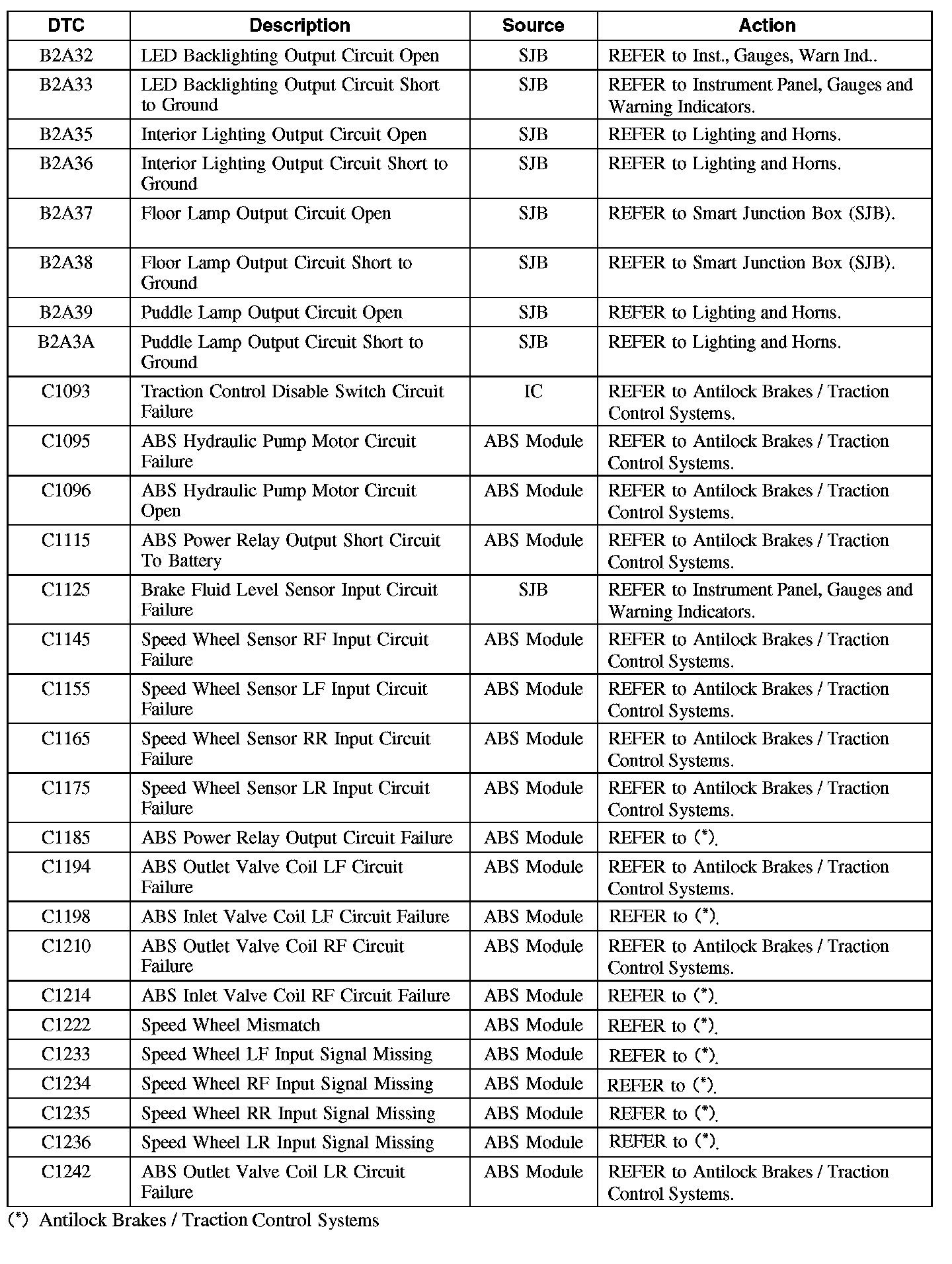 Diagnostic Trouble Code (DTC) Chart