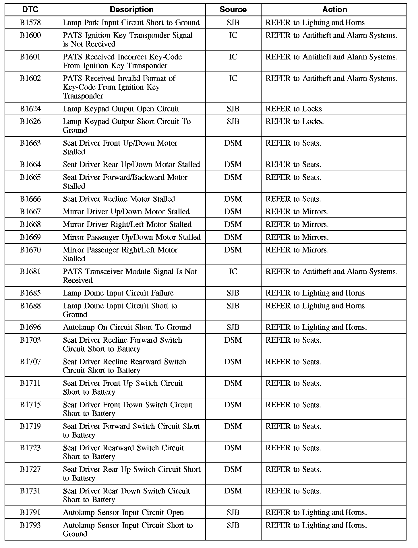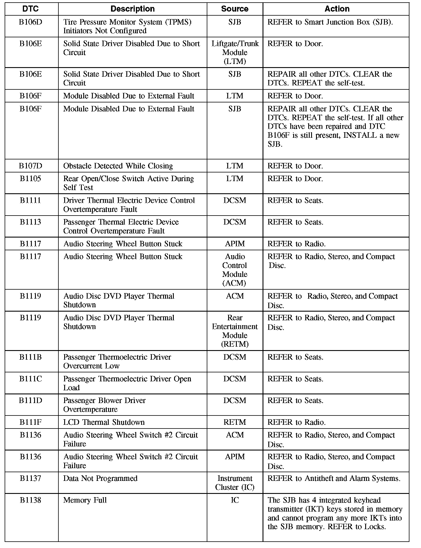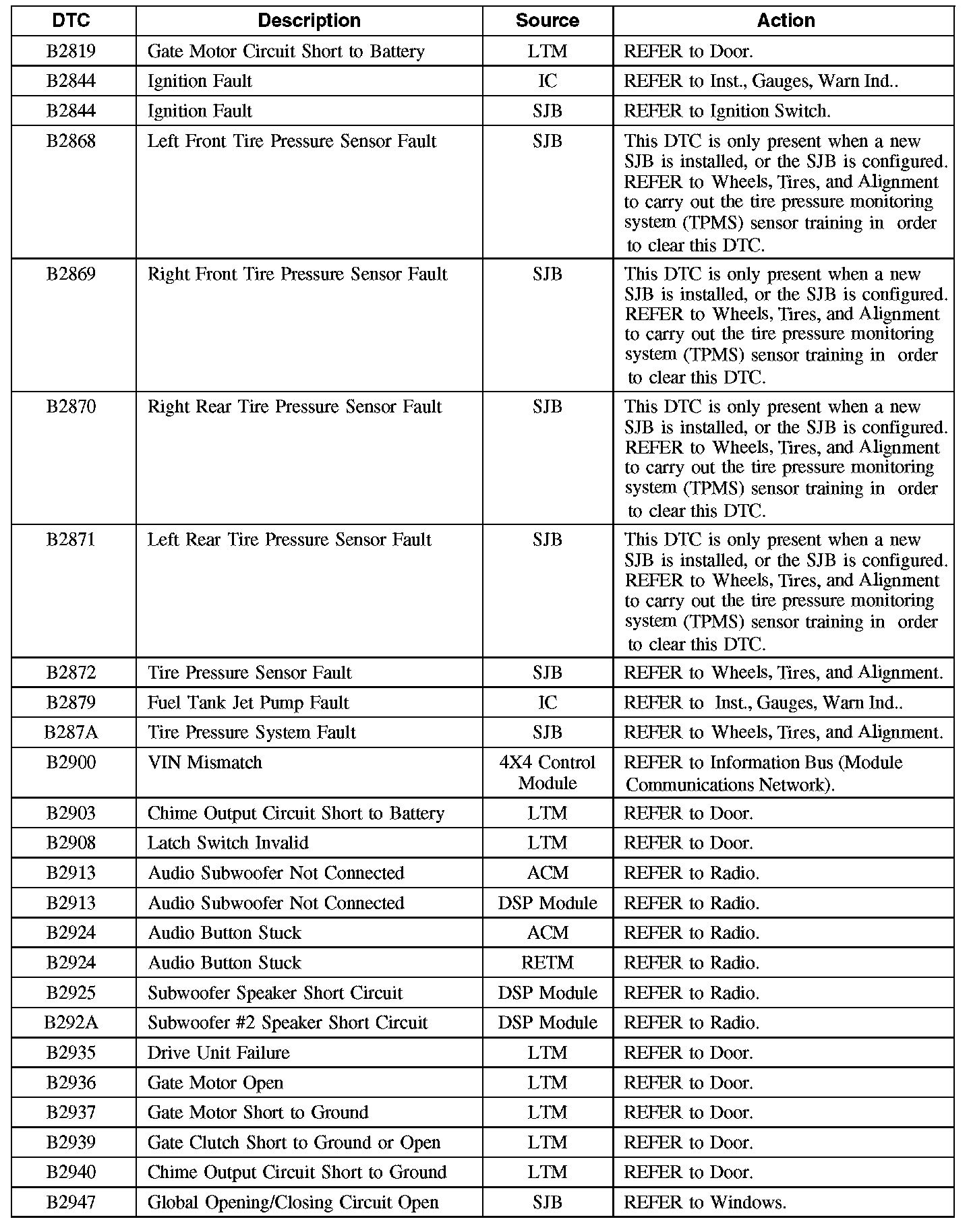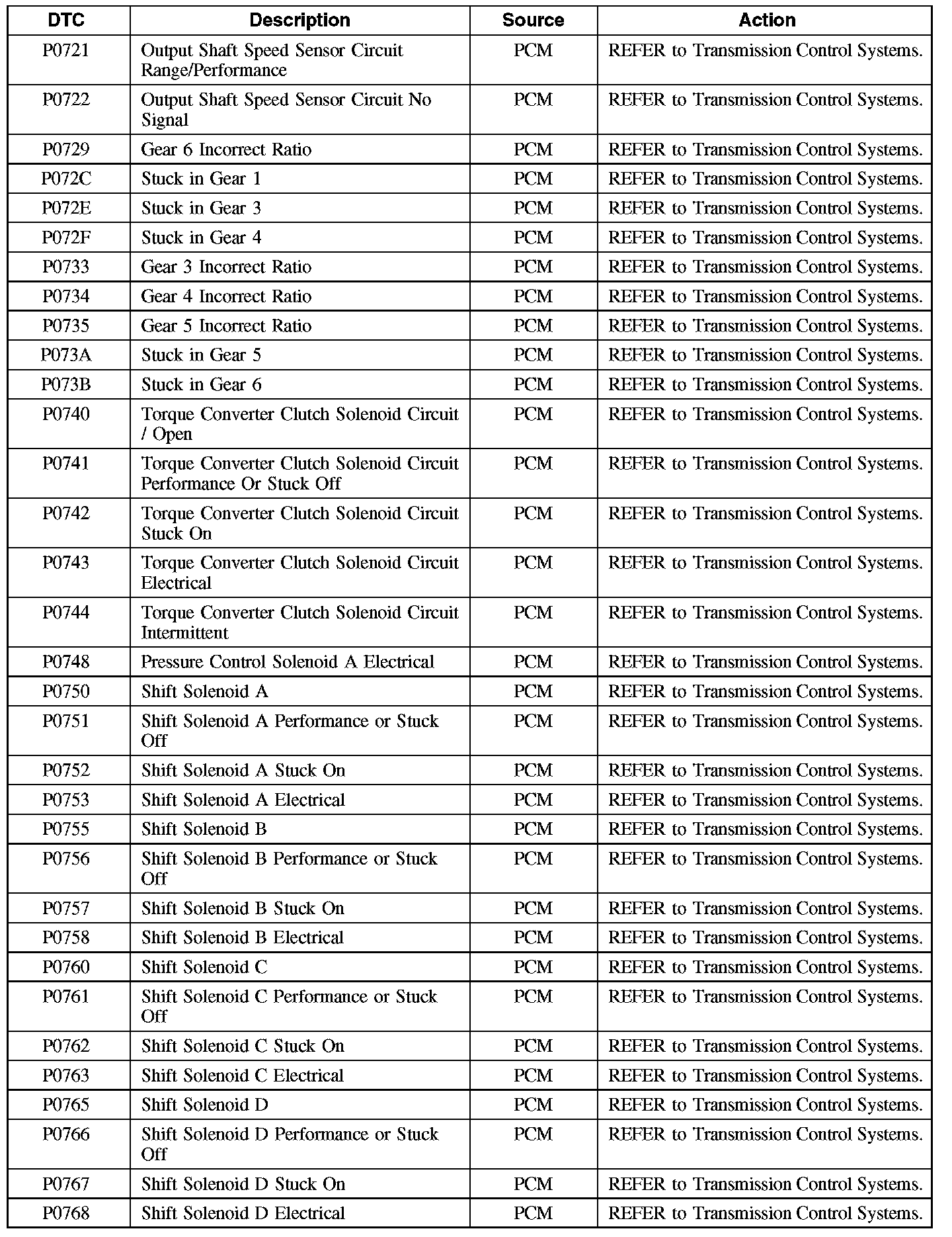 Diagnostic Trouble Code (DTC) Chart