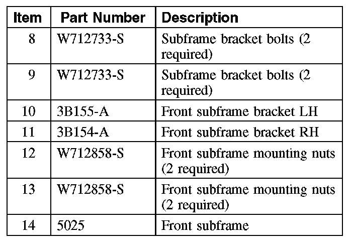 CAUTION: Suspension and subframe fasteners are critical parts because they affect performance of vital parts and systems and their failure may result in major service expense. A new part with the same part number must be installed if installation becomes necessary. Do not use a replacement part of lesser quality or substitute design. Torque values must be used as specified during reassembly to make sure of correct retention of these parts.
