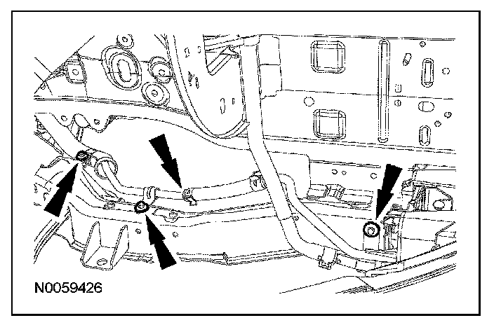 - During installation, the subframe brackets are loosely installed with the support bracket bolts. Tighten the rear subframe nuts prior to tightening the support bracket bolts.