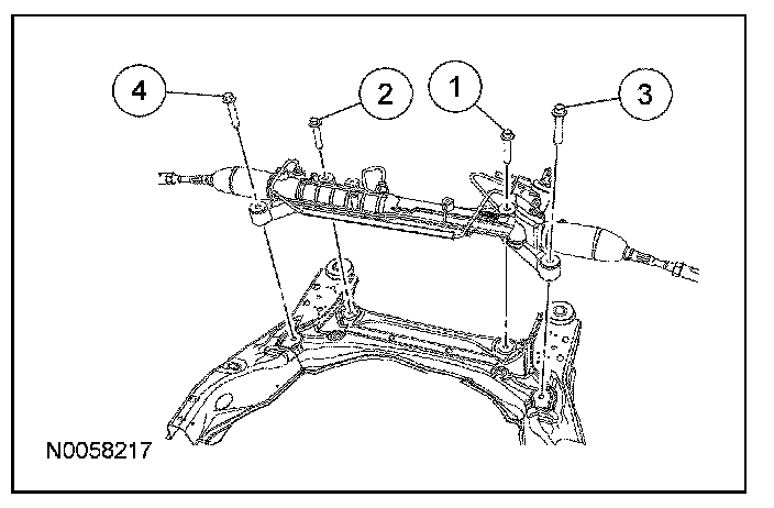 - To install, tighten the steering gear bolts in the sequence shown.