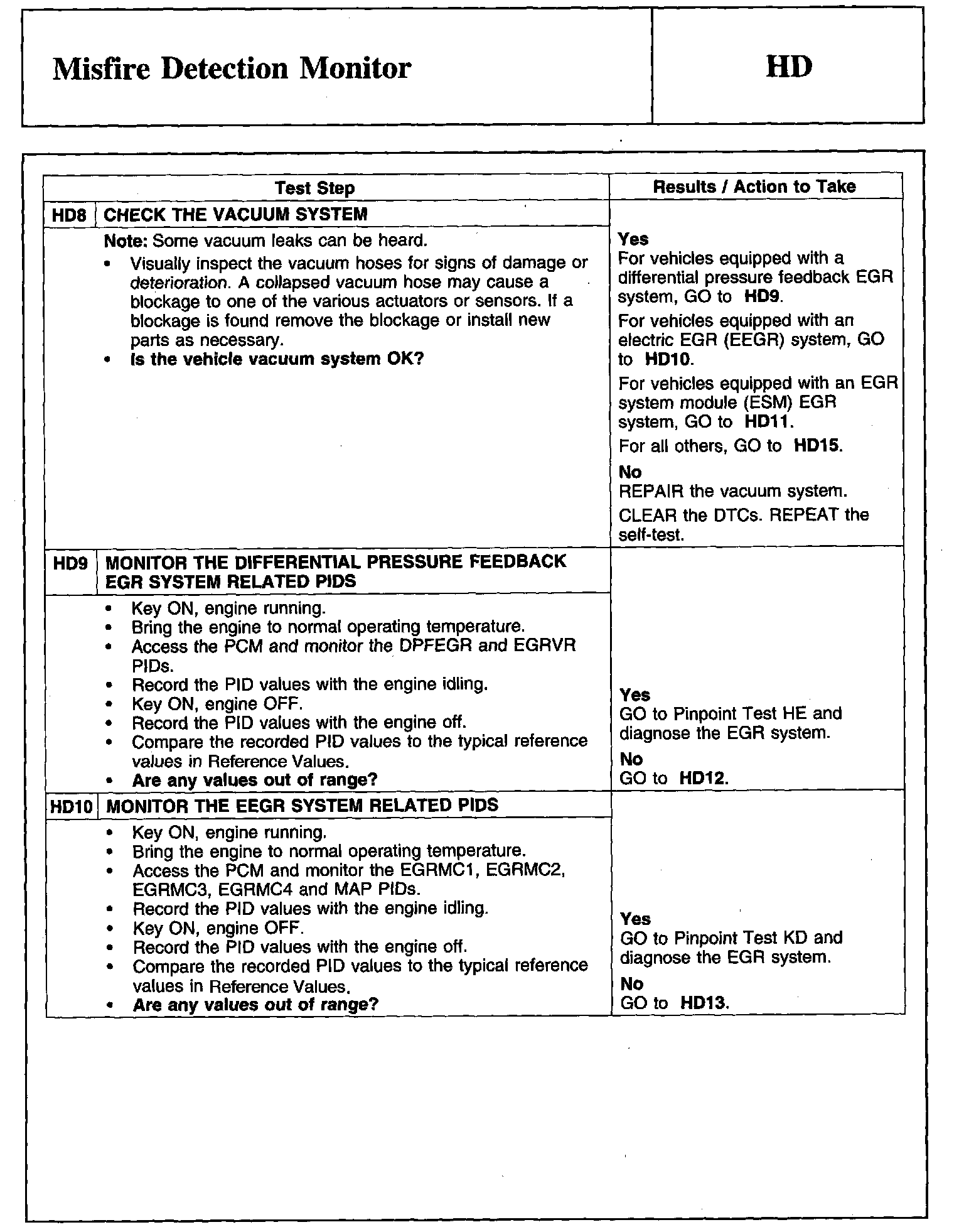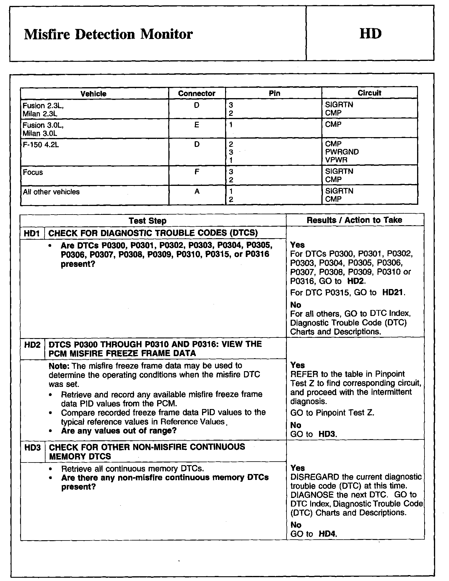 Home >> Ford >> 2008 >> Edge FWD V6-3.5L >> Repair and Diagnosis >> Powertrain Management >> Computers and Control Systems >> Testing and Inspection >> Pinpoint Tests >> Tests HD: Misfire Detection Monitor