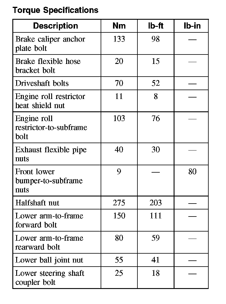 Torque Specifications
