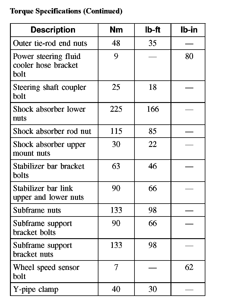 Torque Specifications (Part 2):