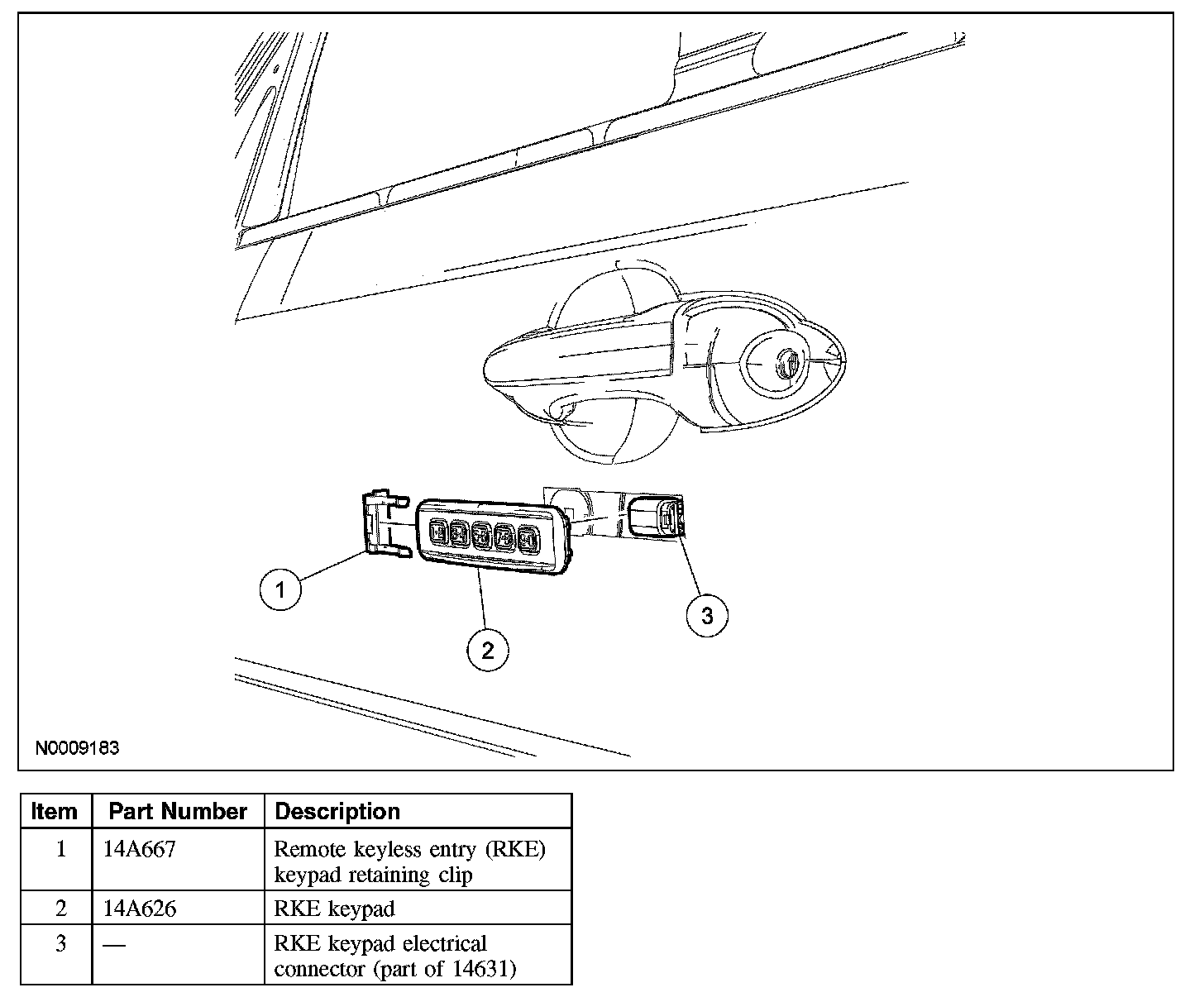 Home >> Ford >> 2008 >> Escape 2WD L4-2.3L VIN Z >> Repair and Diagnosis >> Body and Frame >> Locks >> Keyless Entry >> Keyless Entry Key-Pad >> Service and Repair