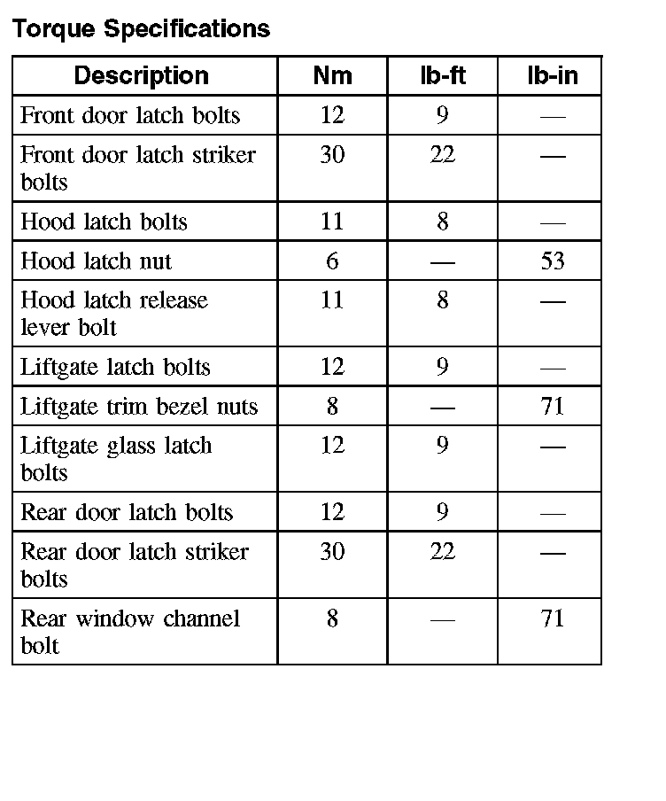 Torque Specifications: