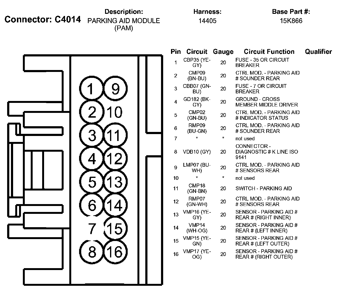 Home >> Ford >> 2008 >> Escape 2WD V6-3.0L >> Repair and Diagnosis >> Diagrams >> Connector Views >> Parking Assist Control Module