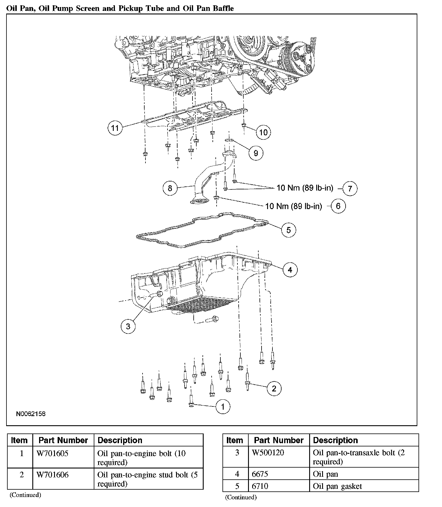 Oil Pan, Oil Pump Screen and Pickup Tube and Oil Pan Baffle (Part 2):