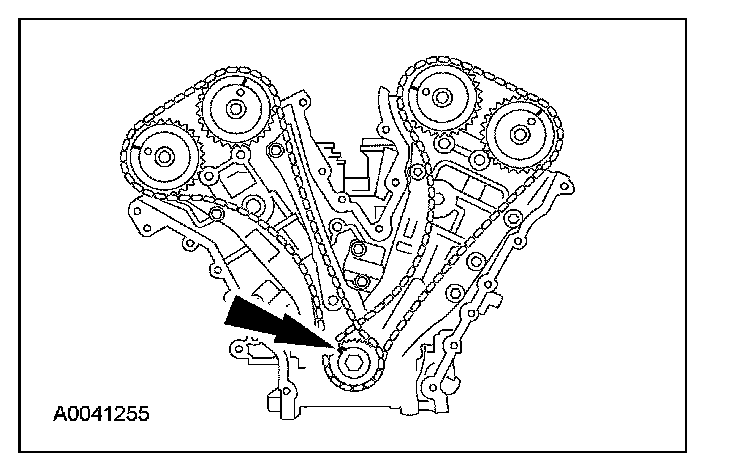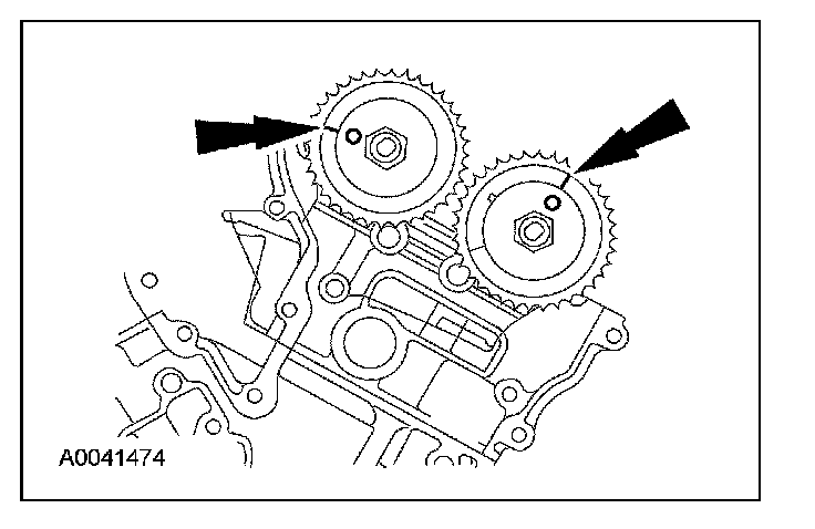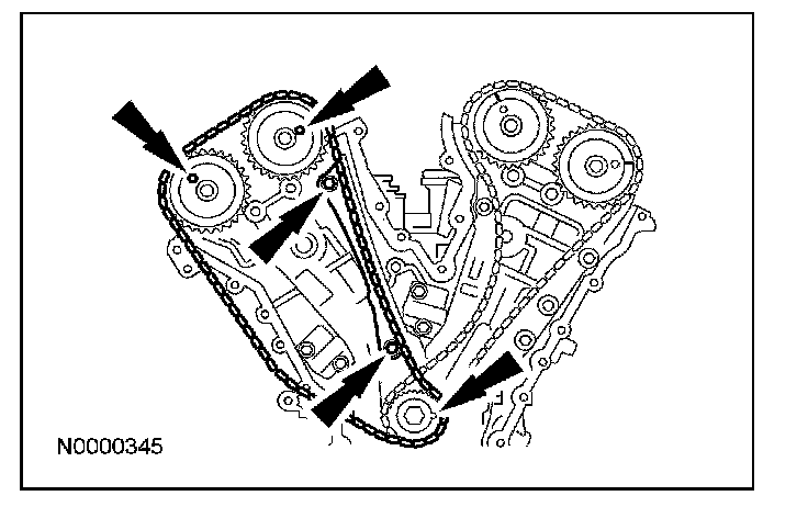 6. If timing marks in the timing chains are not evident, use a permanent-type marker to mark the crankshaft and camshaft timing marks on the LH and RH timing chains.