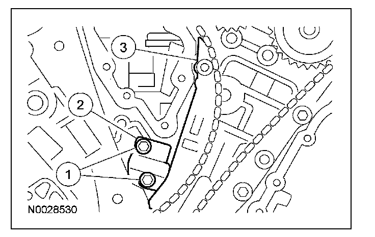 8. Position the LH timing chain and guide and install the bolts.