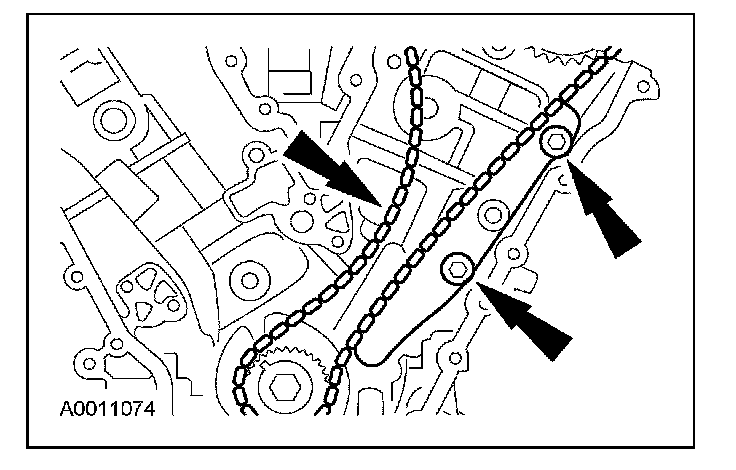 9. Remove the bolts, RH timing chain guide and the timing chain.