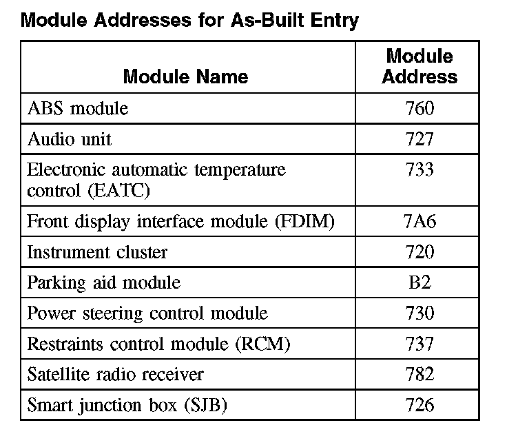 NOTE: It is not necessary to obtain As-Built data unless directed to do so by the scan tool. This data may be accessed from the technician service publication website.