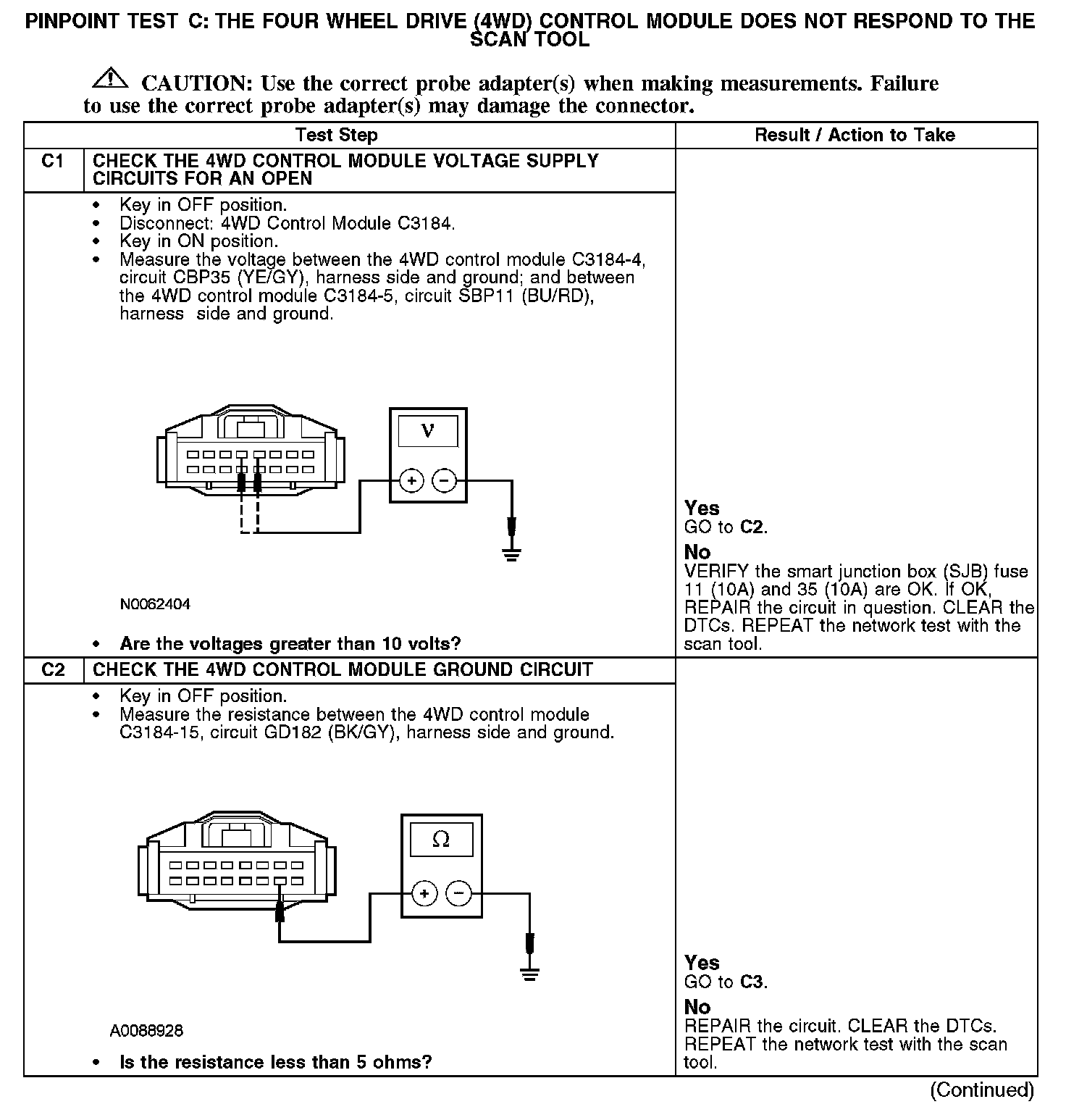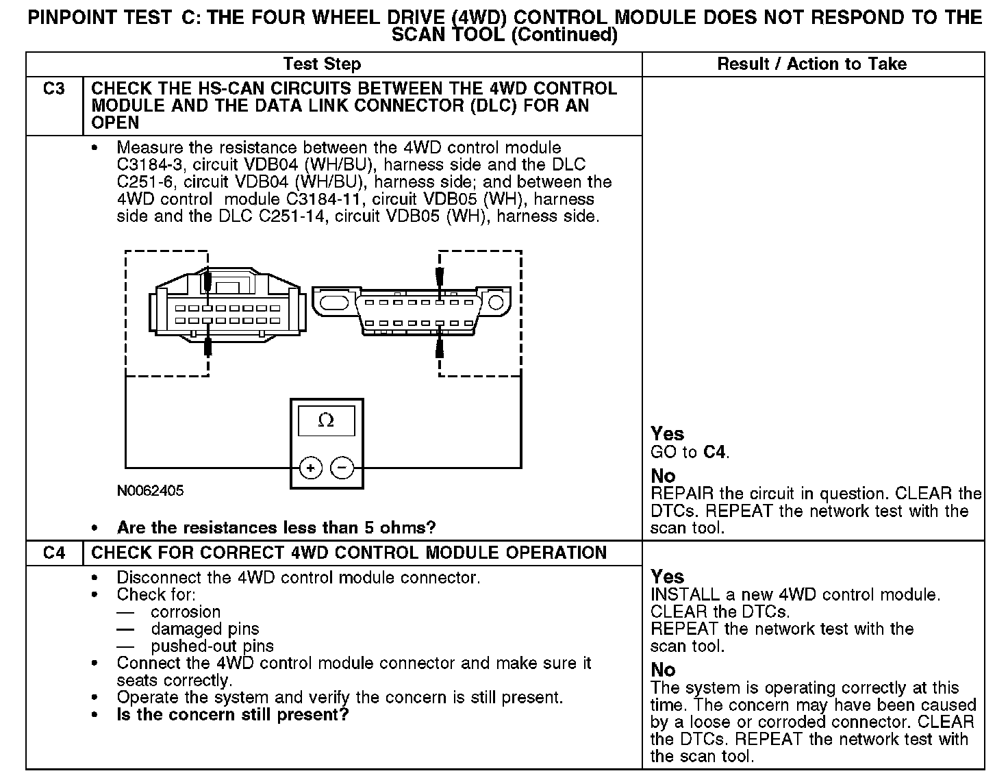 Home >> Ford >> 2008 >> Escape 2WD V6-3.0L >> Repair and Diagnosis >> Powertrain Management >> Computers and Control Systems >> Information Bus >> Testing and Inspection >> Pinpoint Tests >> Test C: The Four Wheel Drive (4WD) Control Module Does Not Respond To The Scan Tool