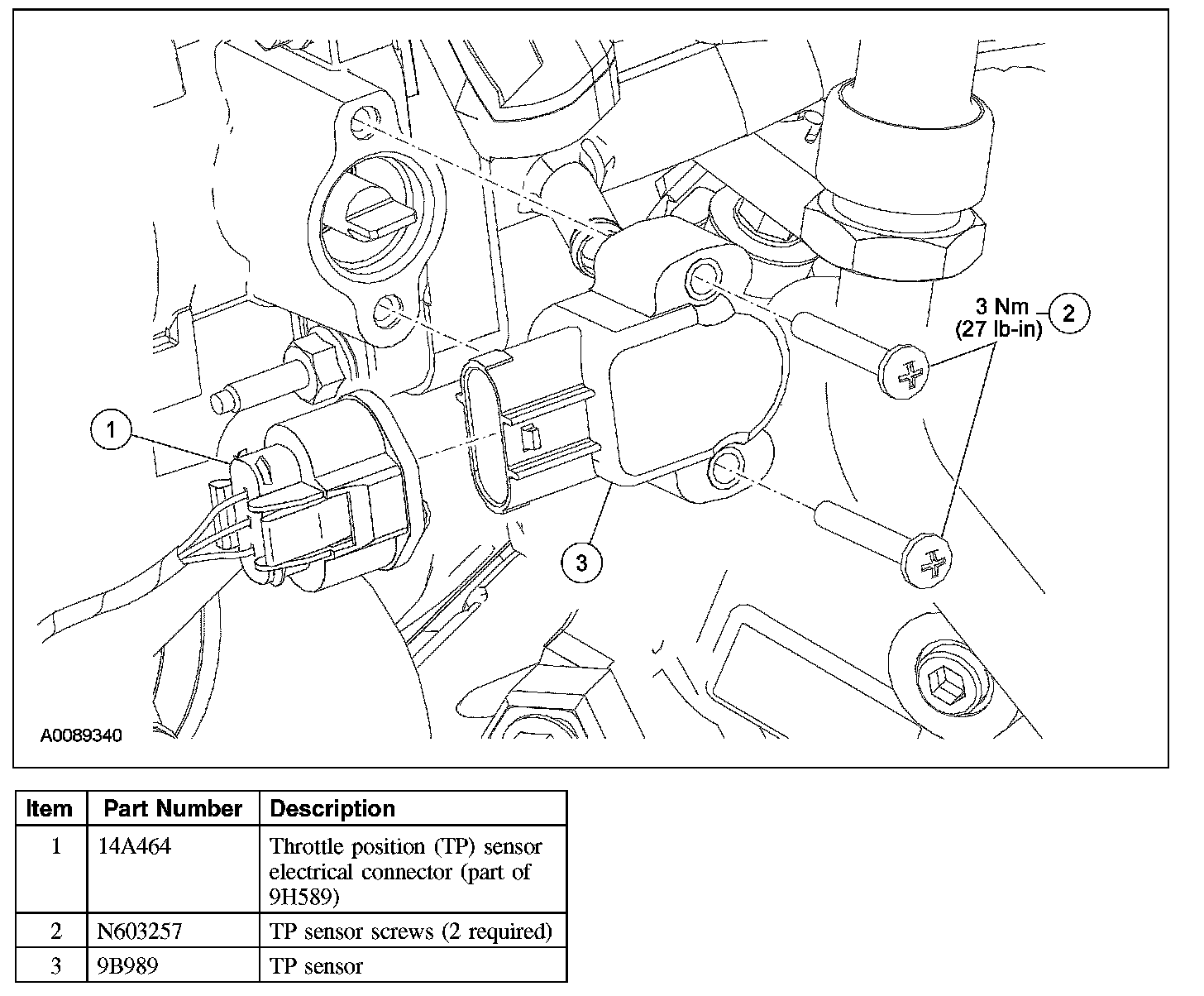- To install, tighten to 3 Nm (27 lb-in).
