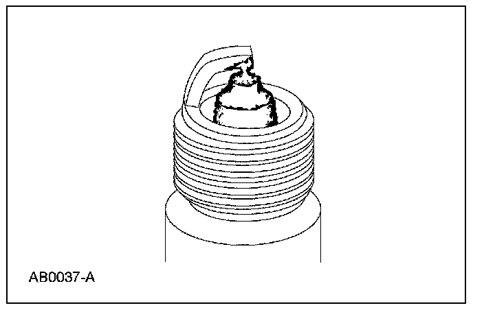 5. Inspect for pre-ignition, identified by melted electrodes and a possibly damaged insulator. Metallic deposits on the insulator indicate engine damage. This may be caused by incorrect ignition timing, wrong type of fuel or the unauthorized installation of a Heli-Coil(R) insert in place of the spark plug threads.