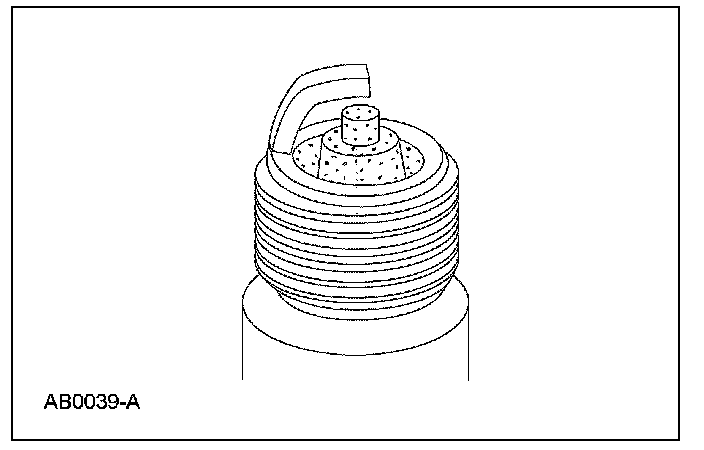 3. Inspect for carbon fouling. Look for black, dry, fluffy carbon deposits on the insulator tips, exposed shell surfaces and electrodes, caused by a spark plug with an incorrect heat range, dirty air cleaner, too rich a fuel mixture or excessive idling.
