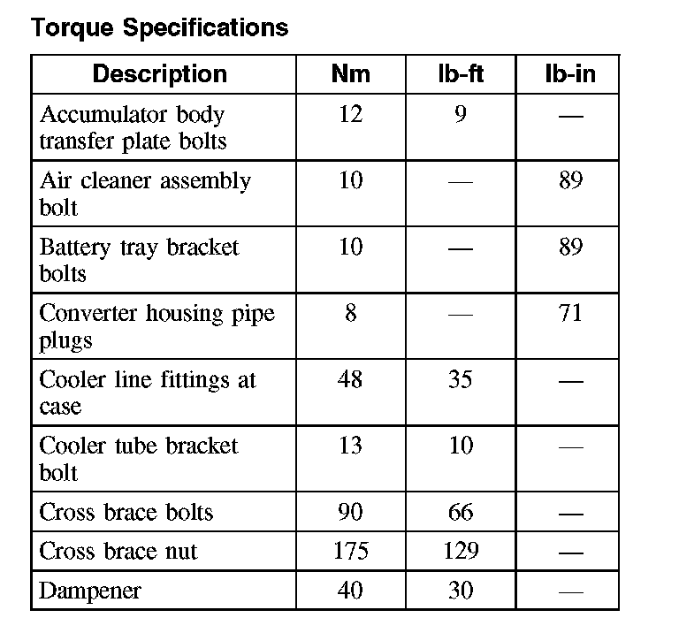 Torque Specifications (Part 1):