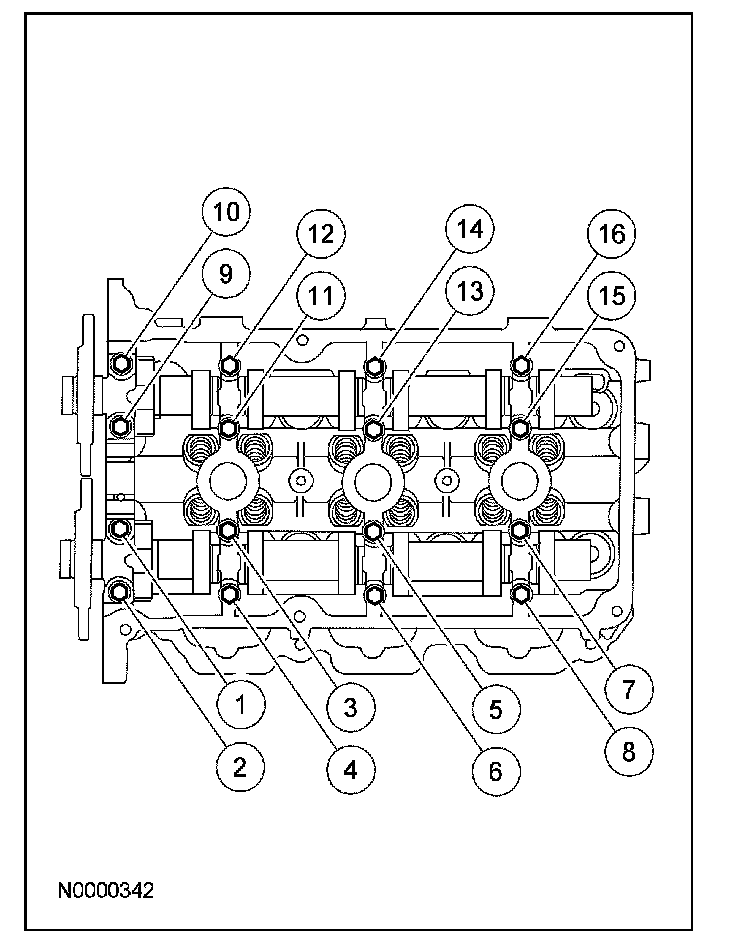 Camshaft Bearing Cap Bolts 10 Nm (89 lb-in).