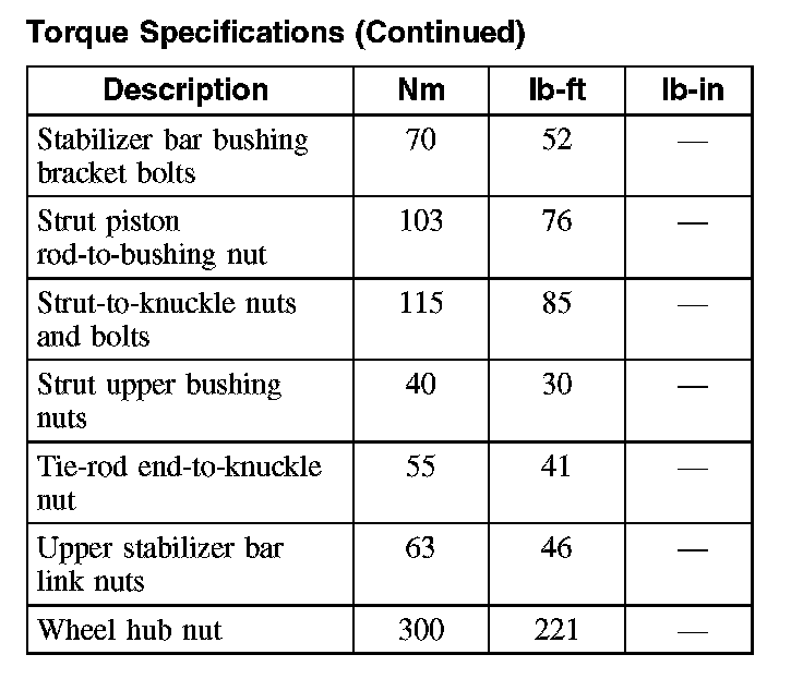 Torque Specifications (Part 2):