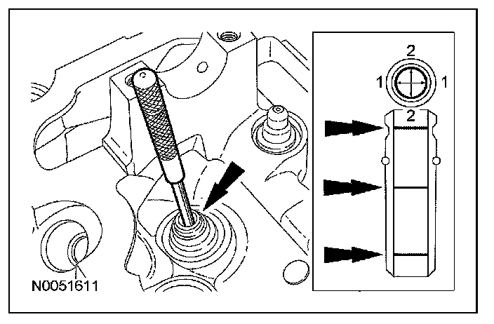 1. NOTE: Valve guides tend to wear in an hourglass pattern. The ball gauge can be inserted into the combustion chamber side of the valve guide if necessary.