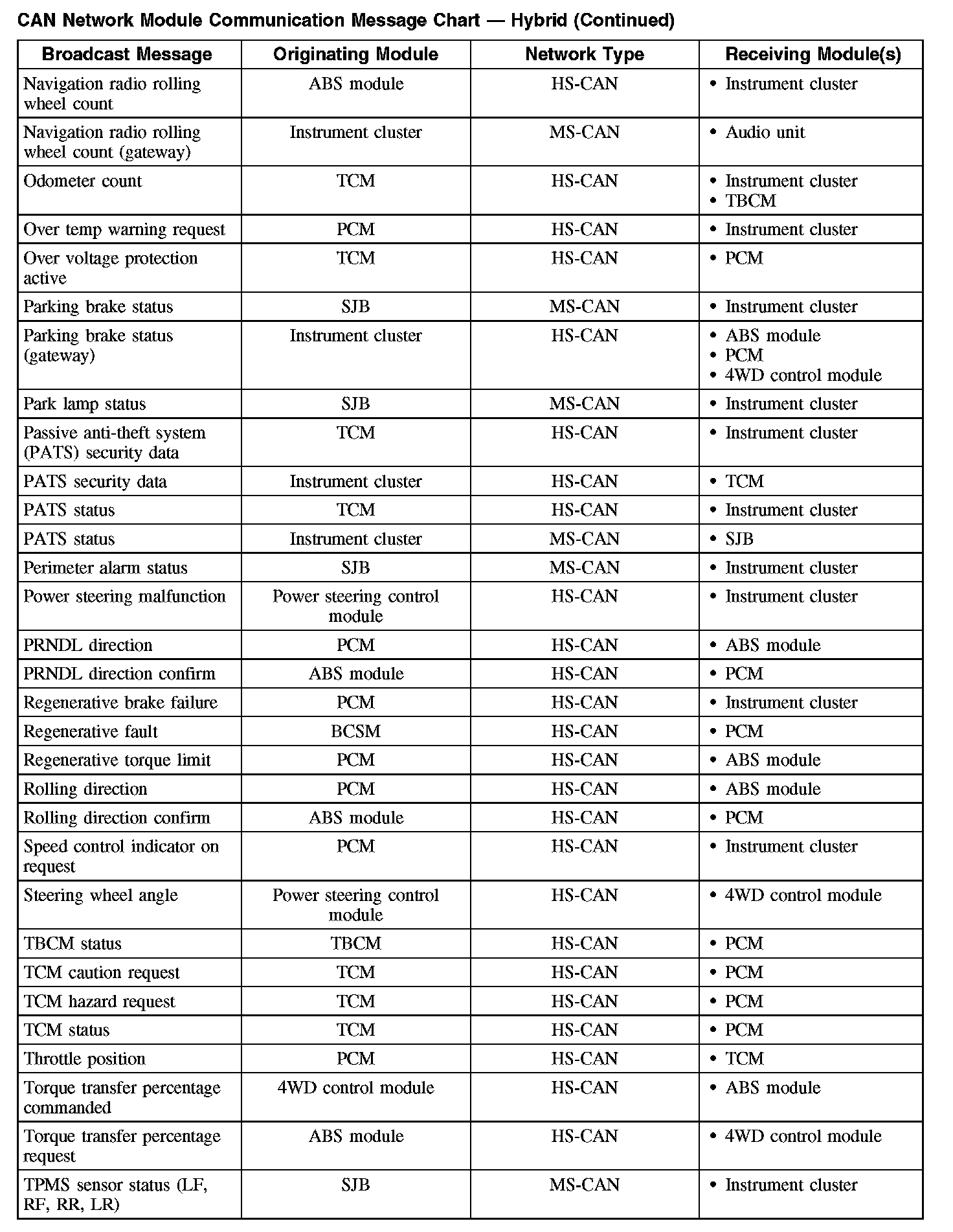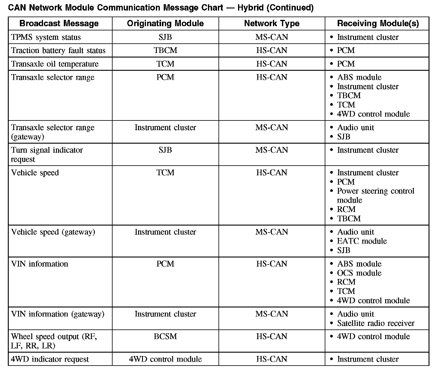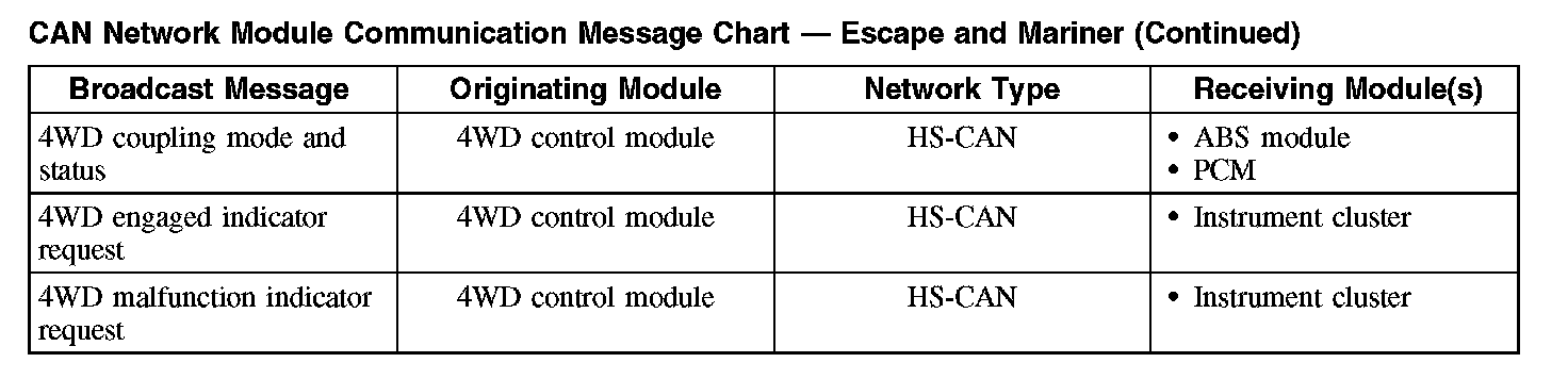 CAN Network Module Communication Message Chart - Escape and Mariner (Part 4):