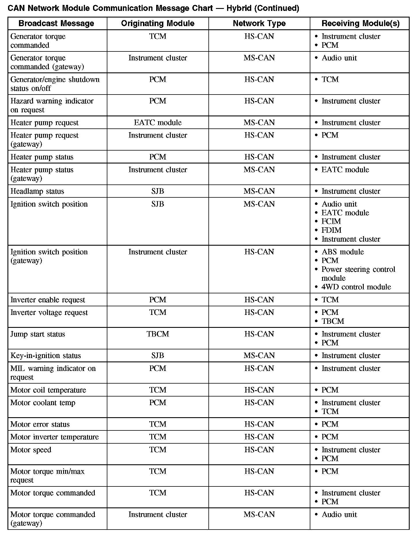 CAN Network Module Communication Message Chart - Hybrid (Part 4):