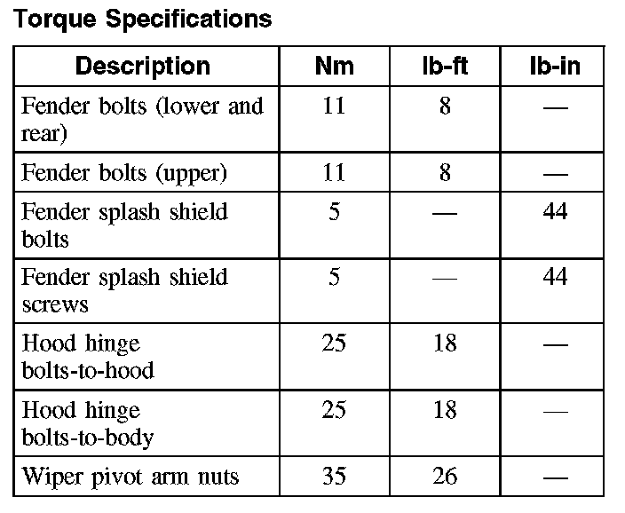 Torque Specifications:
