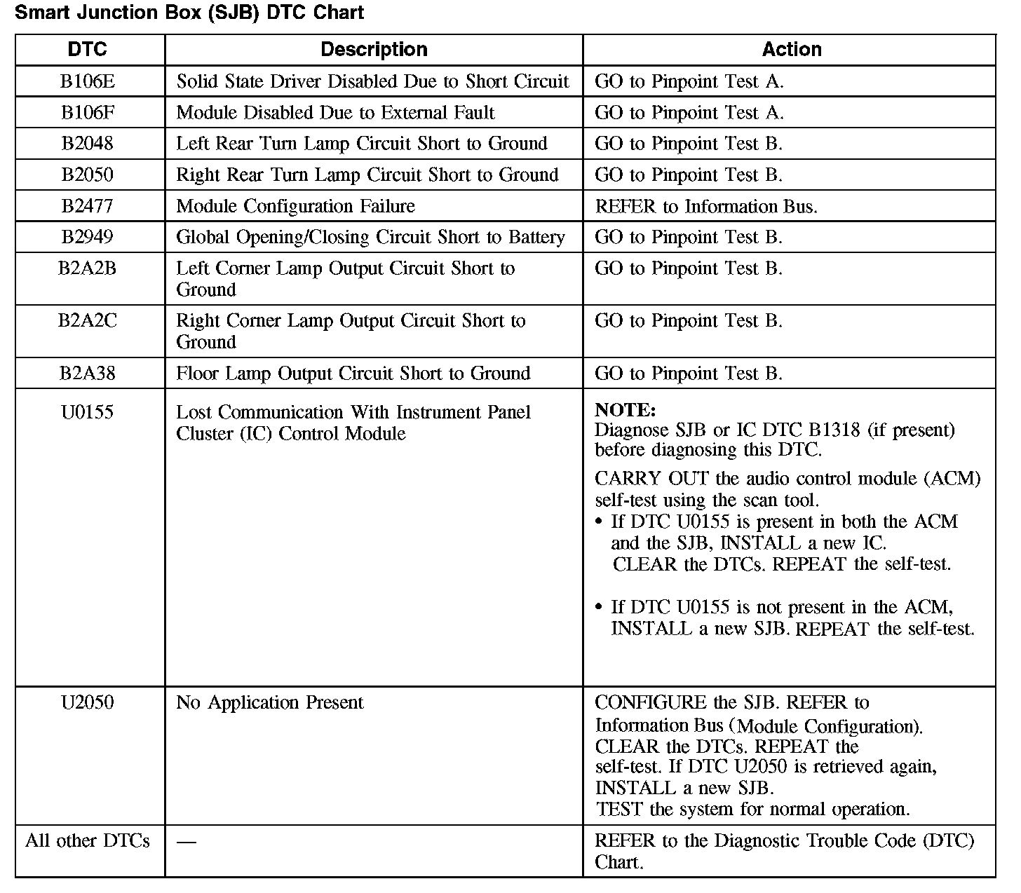 Smart Junction Box (SJB) DTC Chart
