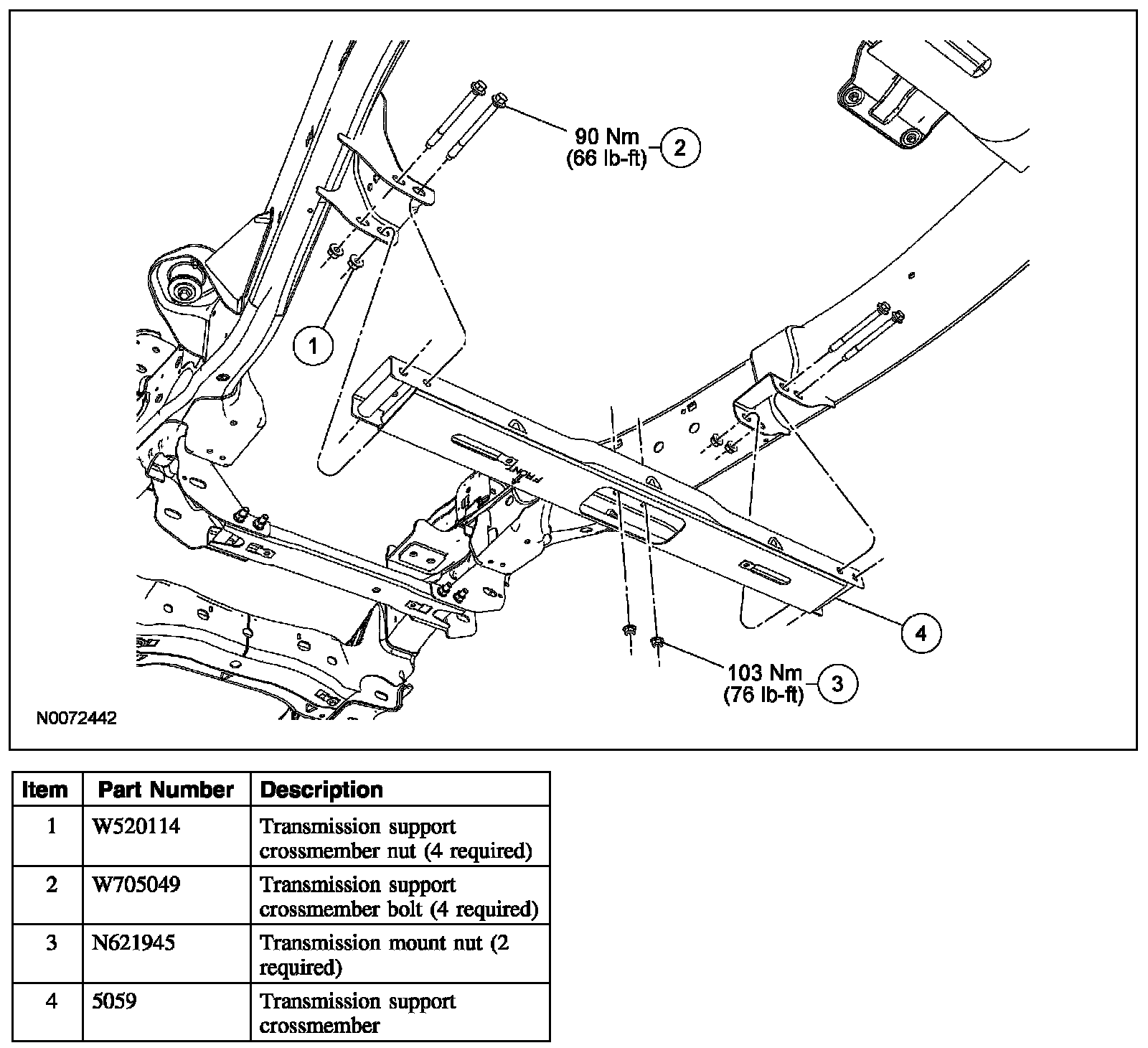 - The crossmember nuts are installed on the crossmember bolts facing the front of the vehicle.