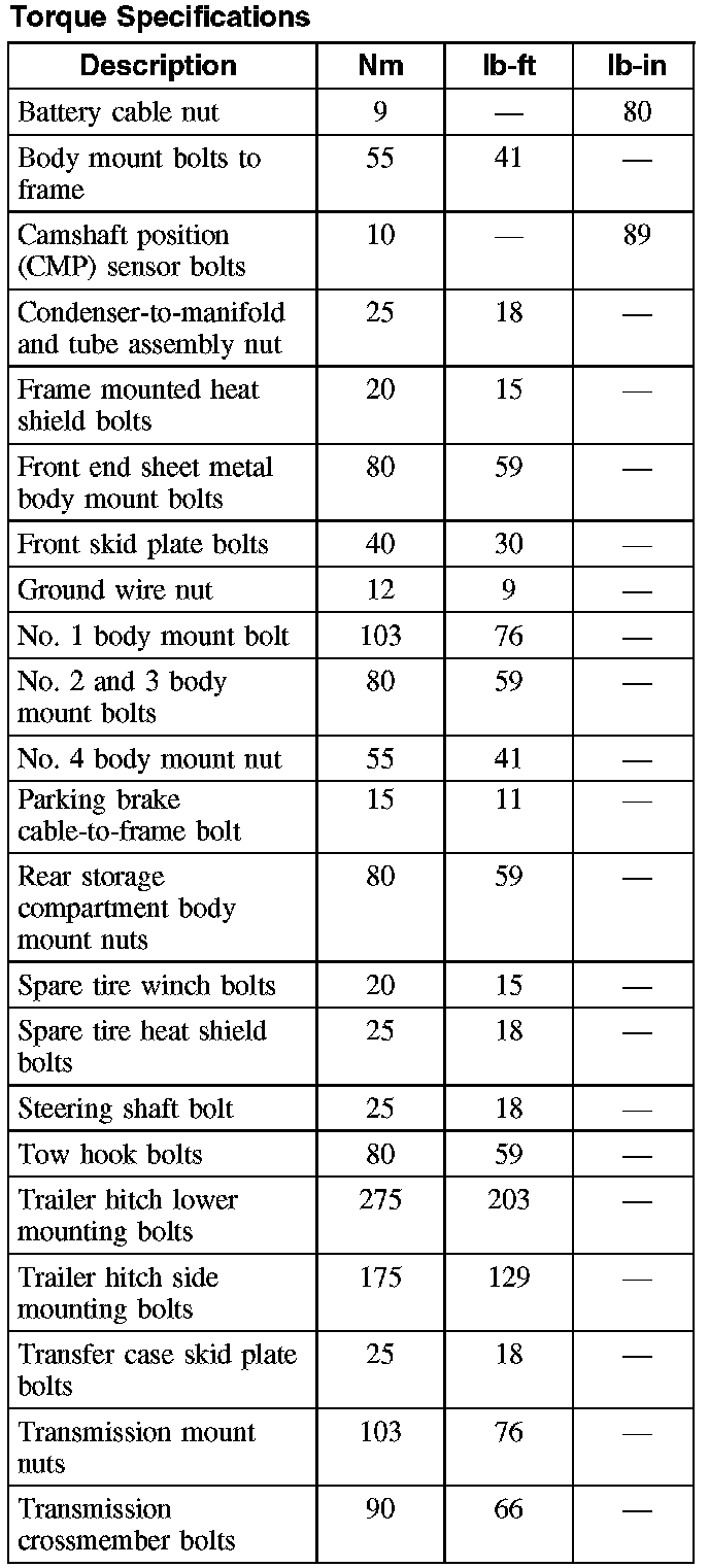Torque Specifications: