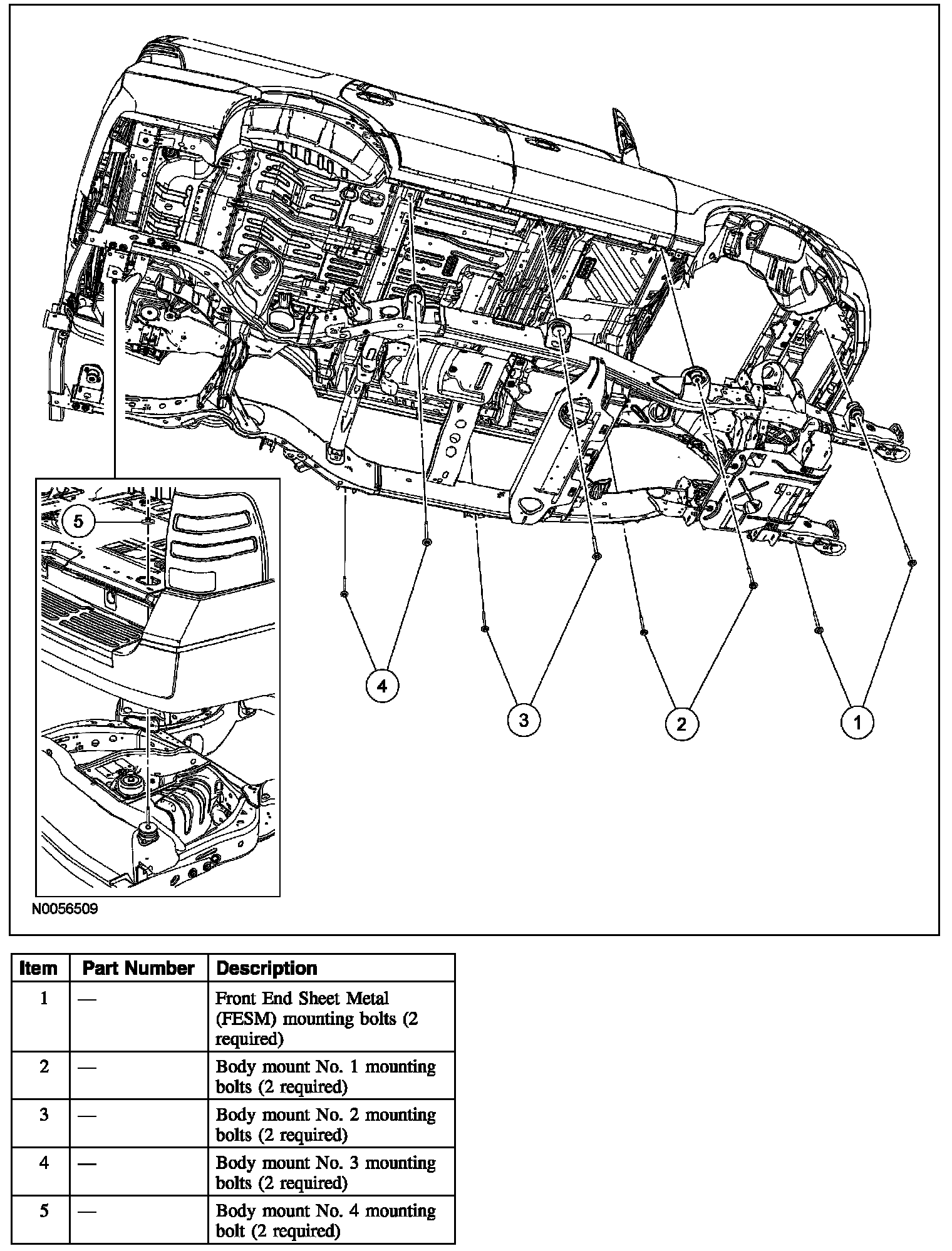 - To install, tighten the FESM body mount No. 2 and No. 3 to 80 Nm (59 lb-ft).