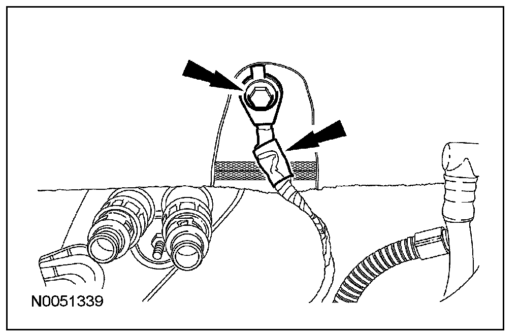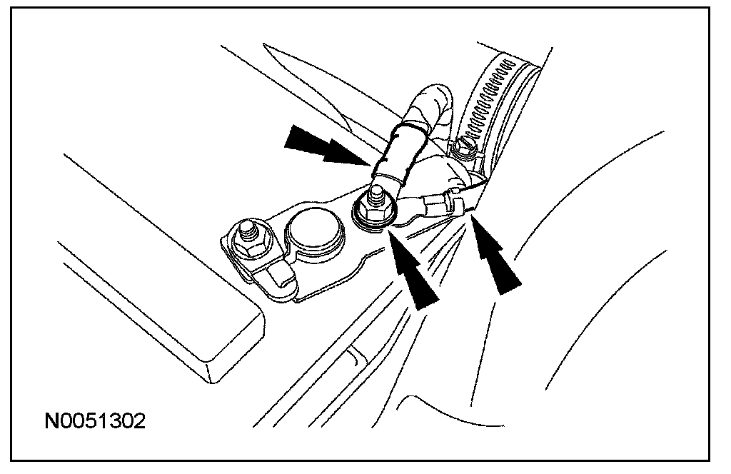 4. Remove the nut and separate the leads from the battery positive cable and position aside.