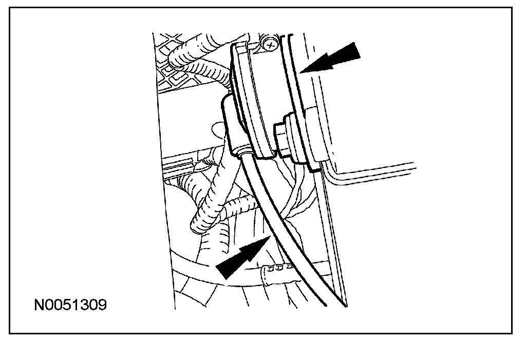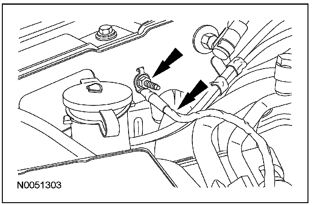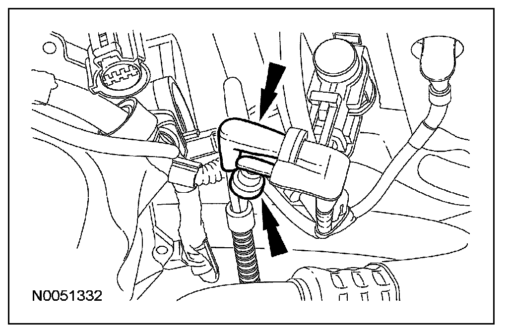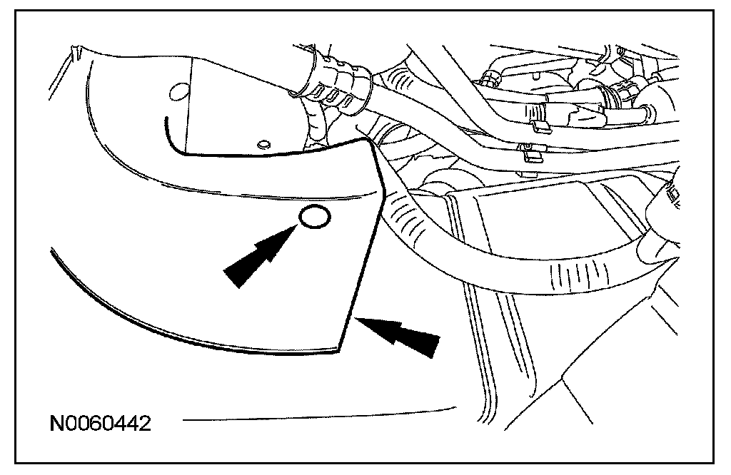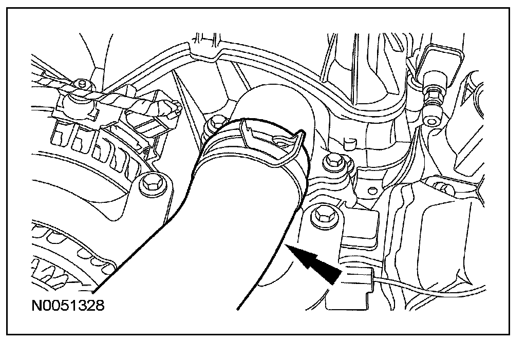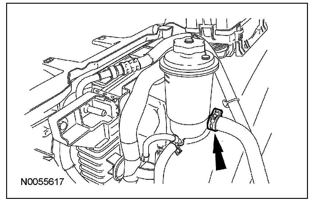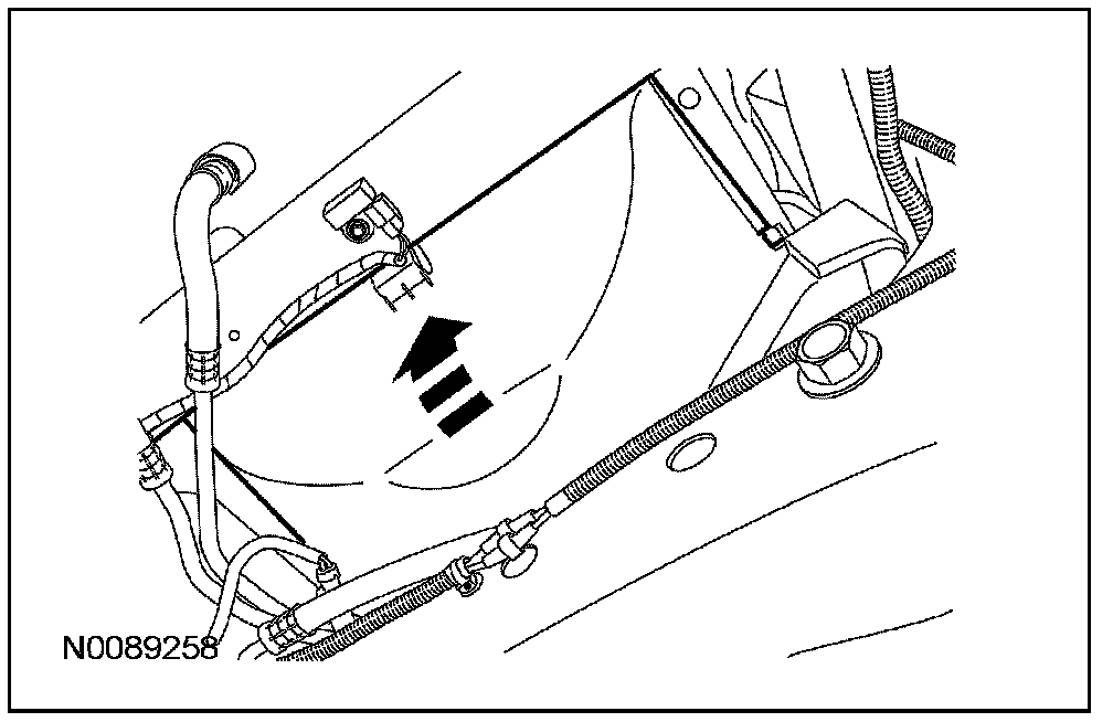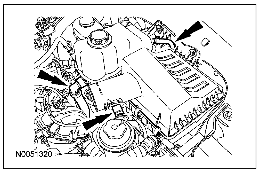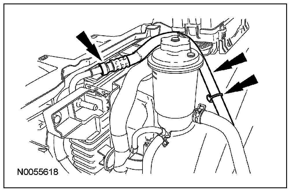 - Unclip the RH hose from the retainers on the side of the degas bottle/air cleaner module.