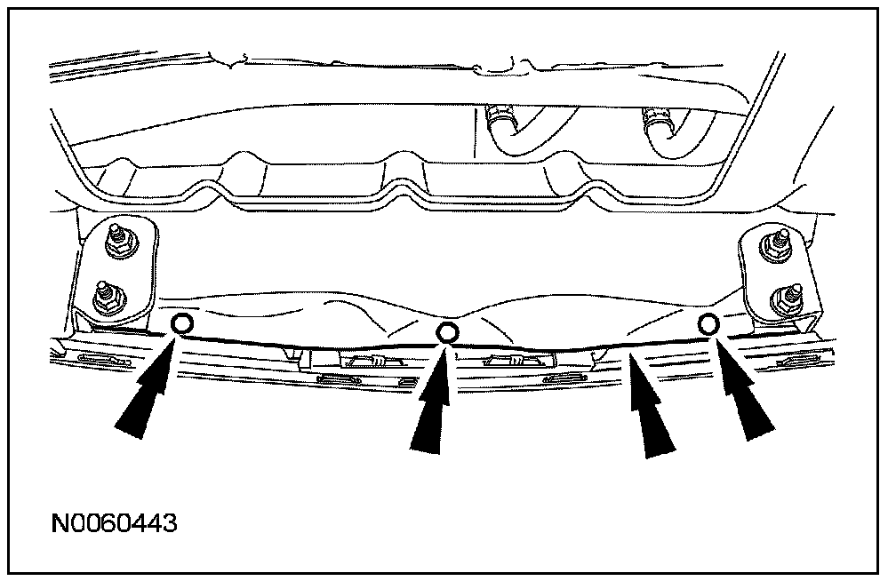 Remove the 6 body mount bolts and 2 front end sheet metal body support bolts.