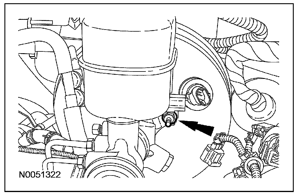 42. Disconnect the brake booster vacuum supply hose and secure the hose to the engine.
